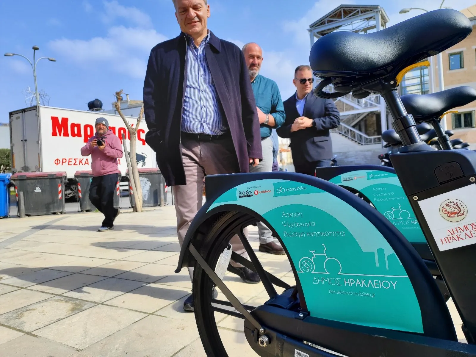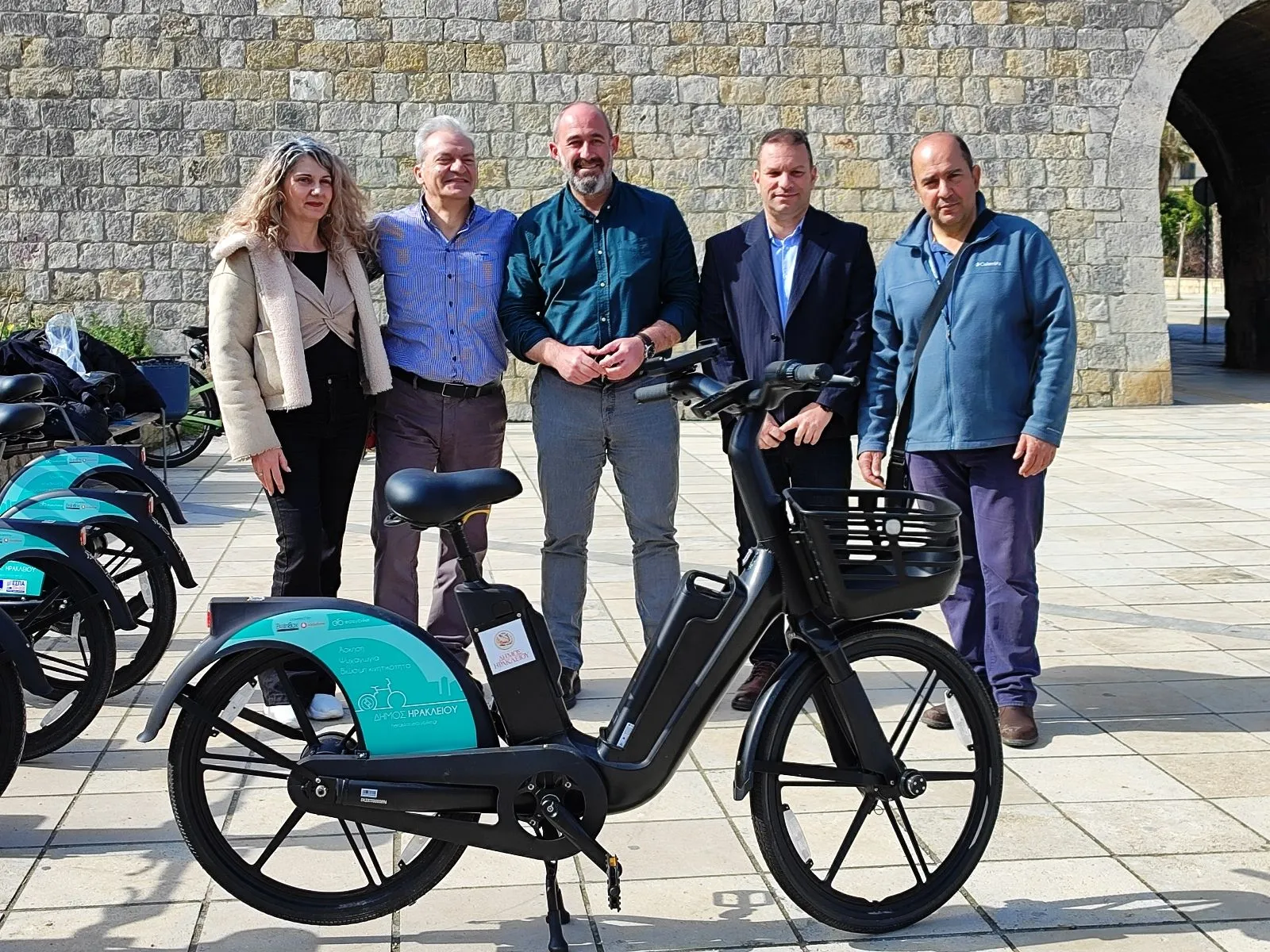 The official launch took place on Thursday morning at Kommeno Bentenaki, where the Municipality of Heraklion and the Deputy Mayor’s Office for Cleanliness, Environment & Energy presented the project. Deputy Mayor Nikos Gialitakis led the demonstration on how to rent and use the bikes.