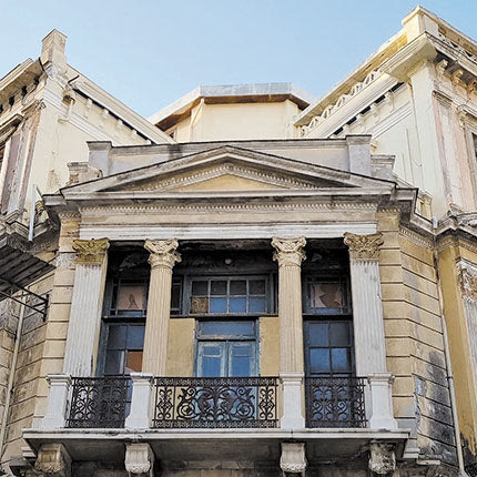 Και κάναμε μια τεράστια βόλτα στο κέντρο της πόλης κι είδα τα πολύτιμα κι ερειπωμένα δυστυχώς κτήρια να στέκουν παραμελημένα, περιμένοντας νέους ιδιοκτήτες, νέες περιπέτειες και σε κάποια απ΄αυτά βούληση πολιτική των τοπικών «αρχόντων» για να συνεχίσουν να υπάρχουν. Στο πρώην Γαλλικό Ινστιτούτο φτάσαμε κι είδα και πάλι μια θλίψη στο βλέμμα του. Βιαστικά περάσαμε και έγινε το βήμα ταχύ ίσαμε την μοναδική κι εκπληκτική οικία Τσαχάκη στην οδό Θεσσαλονίκης. Εδώ τα μάτια χαμογέλασαν γιατί το σπίτι είναι τόσο πολύ φροντισμένο ακόμα και στις μέρες μας… Κατηφορίσαμε την οδό Γιαμαλάκη και μου δείχνε όλα τα «δικά του κτήρια» που πια κι εγώ αναγνώρισα από την κατασκευή τους πώς ήταν δικά του σχέδια…