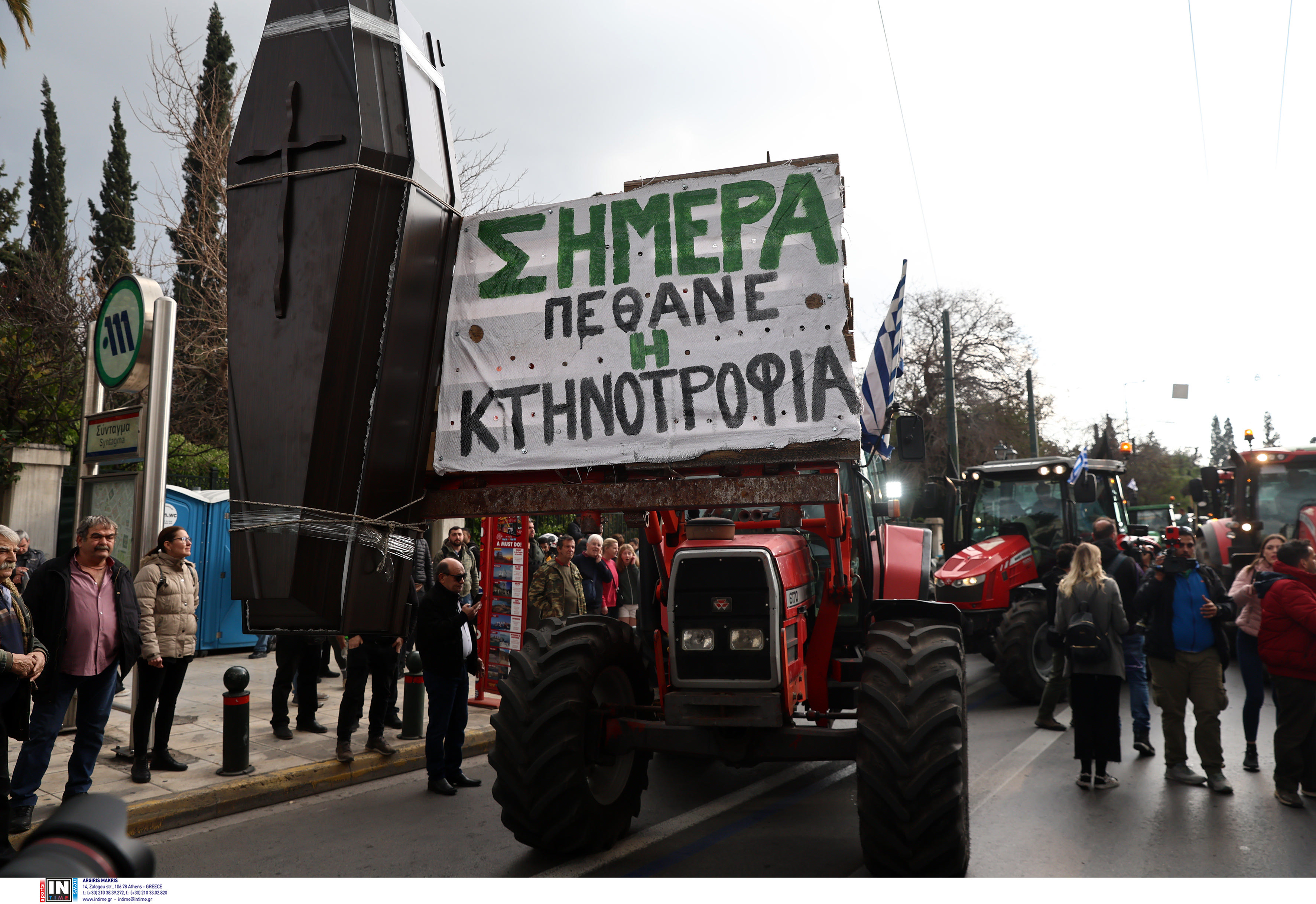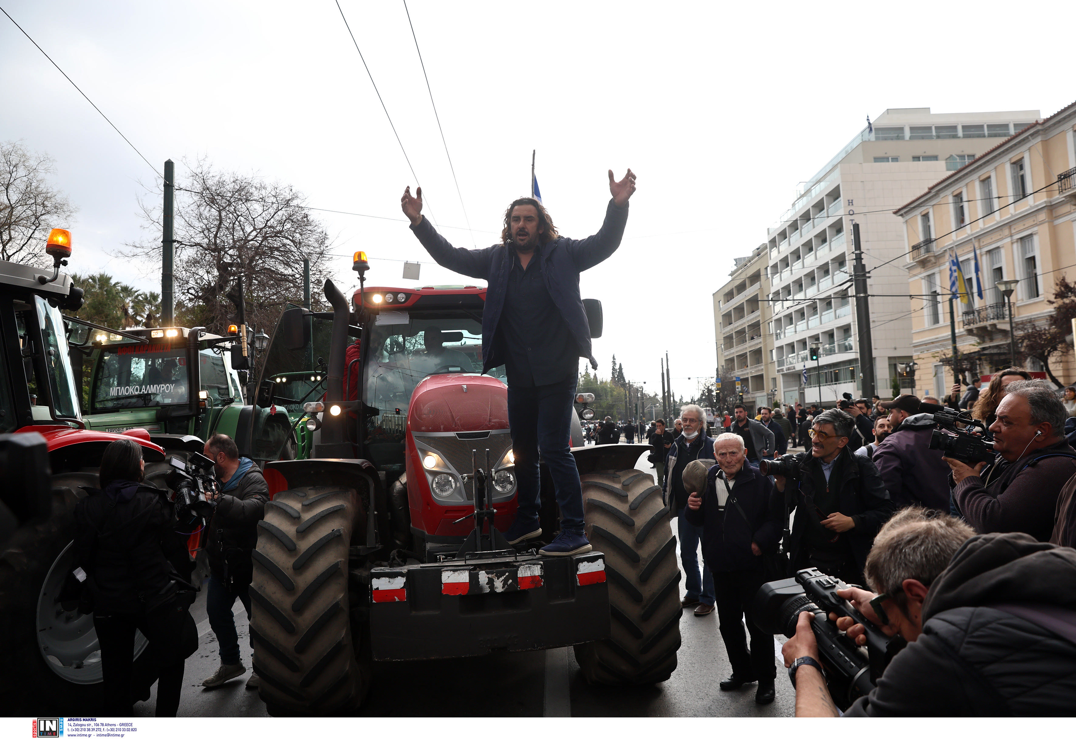 Στο Σύνταγμα κατέφτασαν λίγο μετά τη μία το μεσημέρι της Τρίτης (20.02.24) τα πρώτα τρακτέρ με τους αγρότες, που θα πραγματοποιήσουν συλλαλητήριο στο κέντρο της Αθήνας στις 18.30 το απόγευμα, διεκδικώντας τα αιτήματά τους. Μάλιστα, λίγο πριν τις 15.30 το μεσημέρι καταγράφτηκε ένταση έξω από τη Βουλή, όπου αγρότες ήθελαν να παρατάξουν τα τρακτέρ τους.  Στο συλλαλητήριο θα συμμετάσχουν και αγρότες της Κρήτης οι οποίοι από το πρωί της Τρίτης έφτασαν στον Πειραιά, εκείνοι που δεν είναι ικανοποιημένοι από τις υποσχέσεις του Λευτέρη Αυγενάκη.