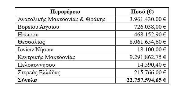 Τα παραπάνω ποσά καταβλήθηκαν απευθείας από το ΥΠΑΑΤ στους κτηνοτρόφους, σύμφωνα με τα στοιχεία που υπέβαλαν οι Περιφέρειες.