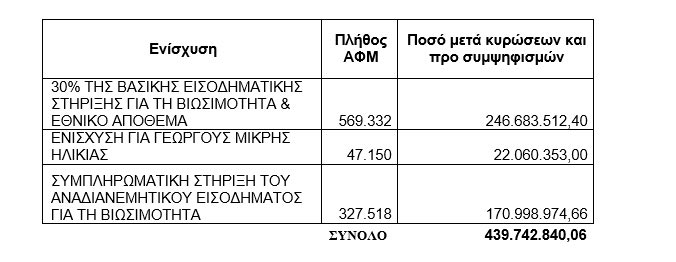 Συνολικά η σημερινή πληρωμή άγγιξε τα 440 εκατομμύρια ευρώ.