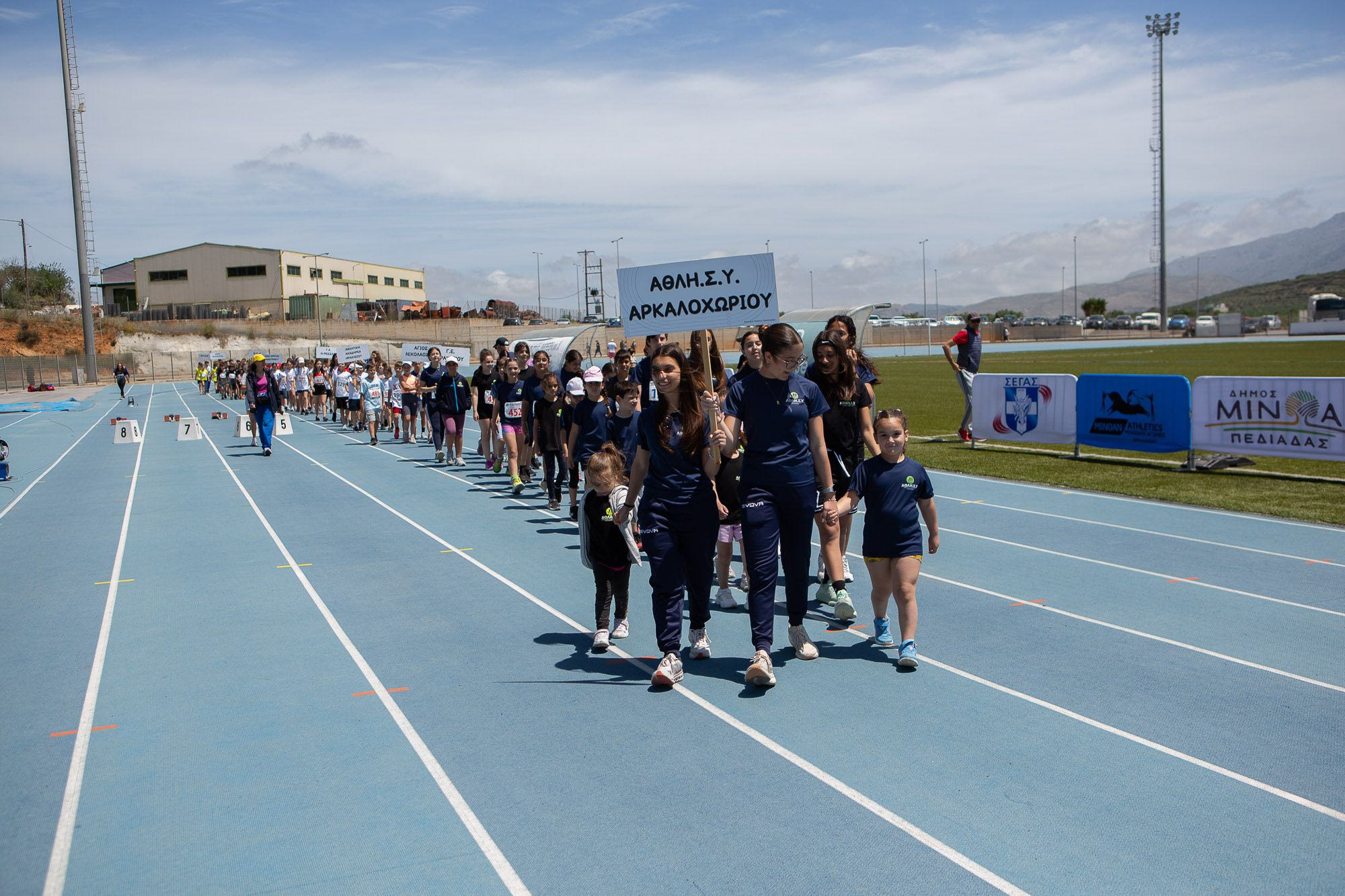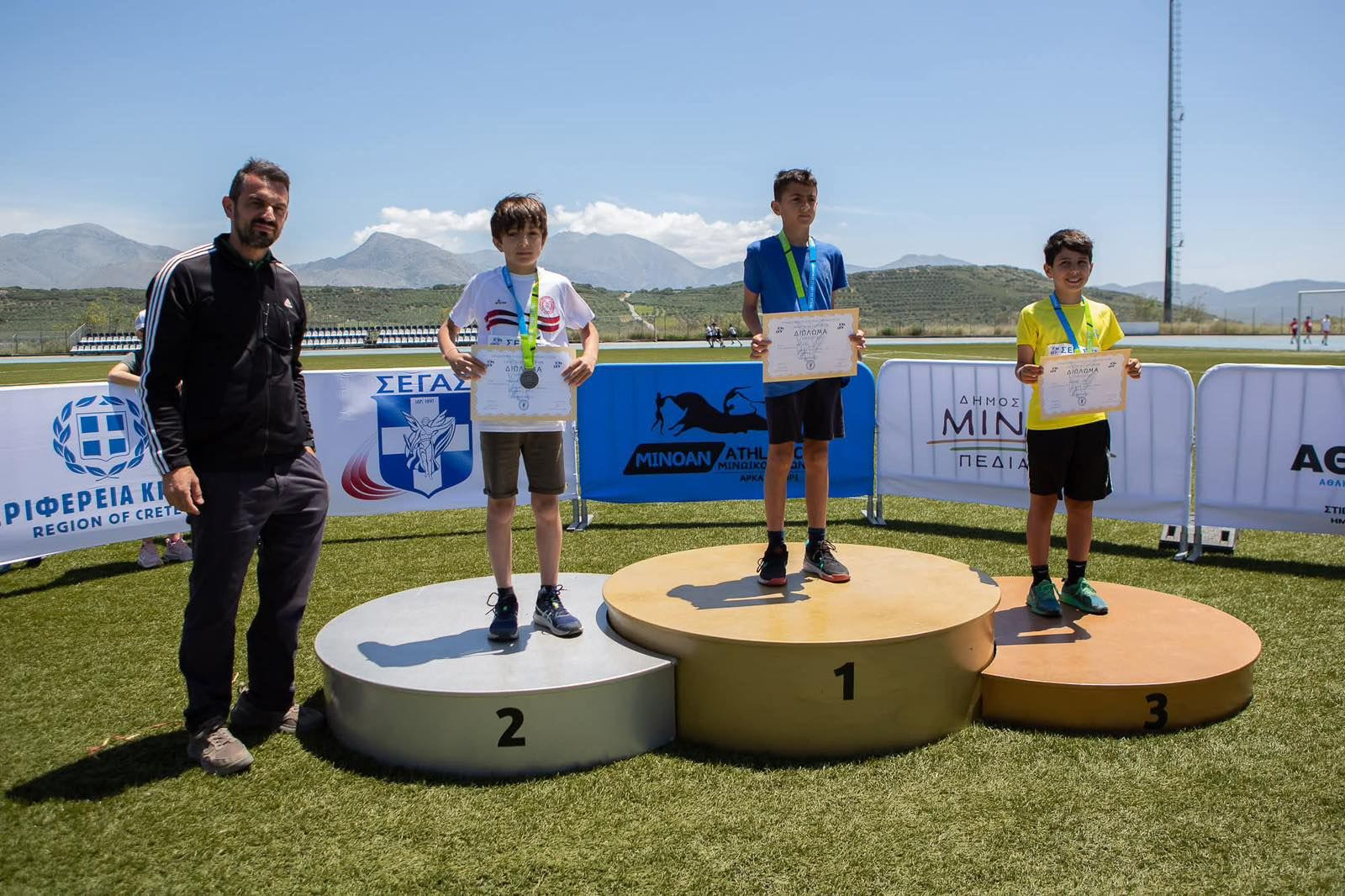 Με μεγάλη επιτυχία ολοκληρώθηκαν την Κυριακή 11 Μαΐου, οι διασυλλογικοί αγώνες στίβου, «Μινωικοί Αγώνες» στο Δημοτικό Στάδιο Αρκαλοχωρίου. Η διοργάνωση ανέδειξε το ταλέντο και το αθλητικό πνεύμα 250 αθλητών και αθλητριών από σωματεία όλης της Κρήτης ενώ οι αγώνες περιλάμβαναν το Δρομικό Τρίαθλο, αγωνίσματα της κατηγορίας Κ12, καθώς και ατομικά αγωνίσματα.