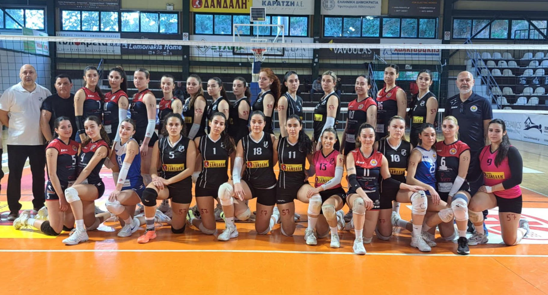 Σε μια ακόμη υπέροχη στιγμή, οι δυο ομάδες φωτογραφήθηκαν μαζί πριν την έναρξη της αναμέτρησης ενώ στο μπράτσο τους οι αθλήτριες, είχαν τον αριθμό 57, τιμώντας έτσι τα θύματα των Τεμπών.