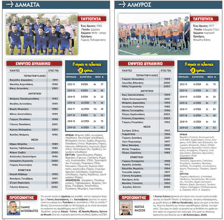Αλμυρός και Δαμάστα μετέχουν για πρώτη φορά και έχουν τον ενθουσιασμό του πρωτάρη. Ο Αλμυρός με προπονητή τον Κώστα Κιάσσο και η Δαμάστα με τον Γιάννη Χατζησεβαστό έχουν στόχο, φυσικά, την παραμονή τους, μέσα από ένα δύσκολο όμιλο. Αμφότερες ενισχύθηκαν στις μεταγραφές και θέλουν ένα καλό ξεκίνημα που θα τις βοηθήσει για την επίτευξη του στόχου τους.