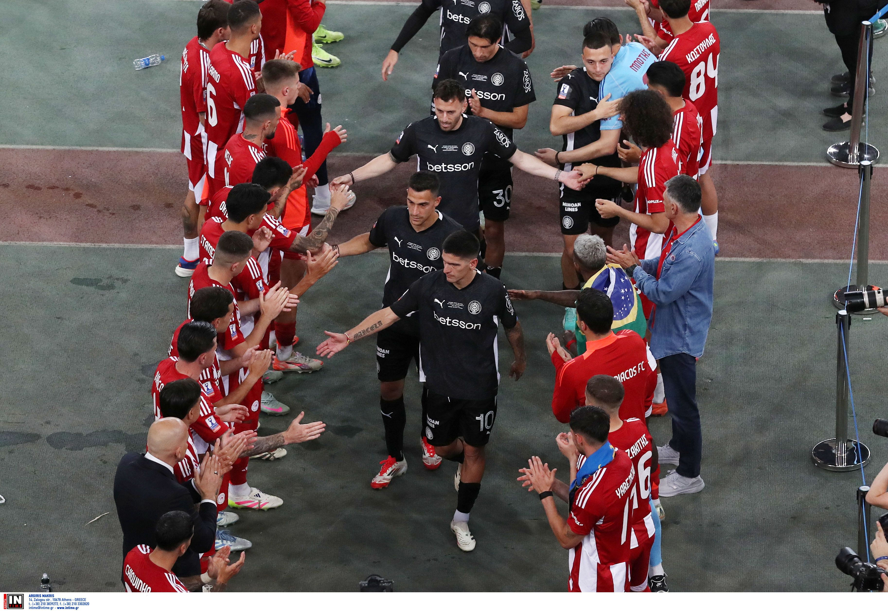 Να σημειωθεί πάντως ότι πριν την απονομή, οι παίκτες του Ολυμπιακού έκαναν πασίγιο στους ποδοσφαιριστές του ΟΦΗ, αναγνωρίζοντας την προσπάθειά τους.