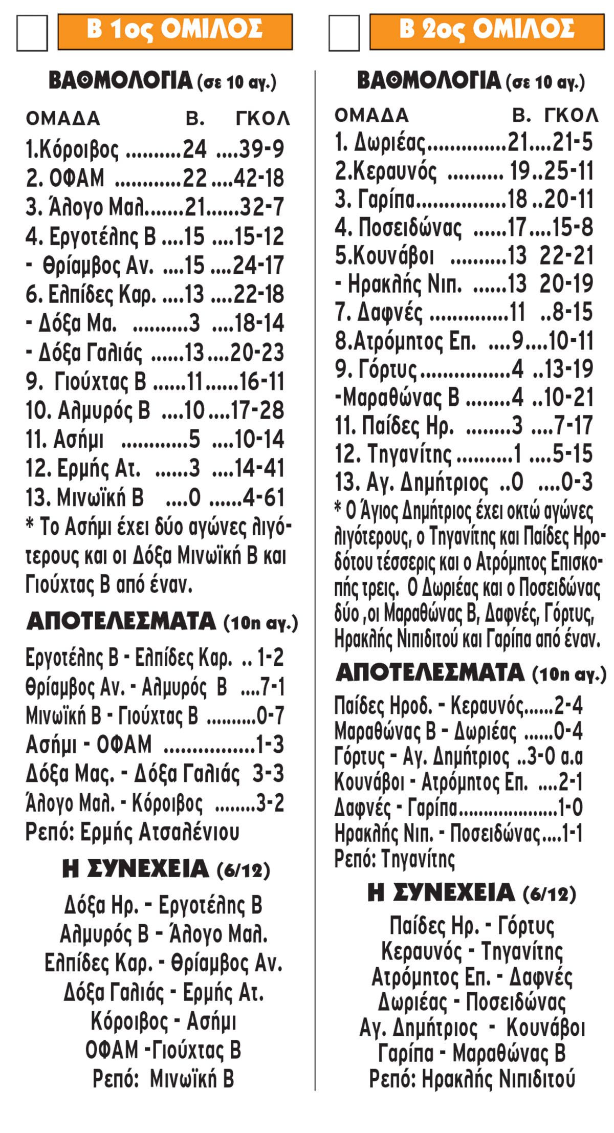 Με ανατροπή πήραν μία σπουδαία νίκη στο «Μαρτινέγκο» οι Ελπίδες Καρτερού (2-1 τον Εργοτέλη Β). Με το εντυπωσιακό 7-1 κέρδισε ο Θρίαμβος Αναλήψεως τον Αλμυρό Β στην Χερσόνησο, ενώ «επτάρα» (7-0) πέτυχε και ο Γιούχτας Β επί της Μινωϊκής Β στο γήπεδο «Πανεπιστημίου / Περιφέρειας».