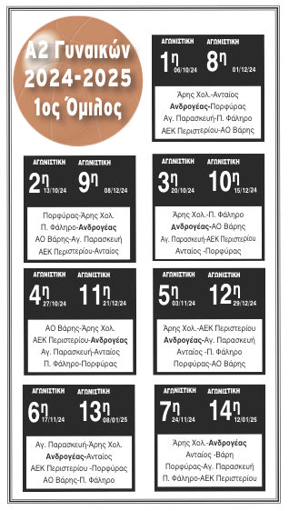 Ο νεοφώτιστος Ανδρογέας στην Α2 γυναικών στις 6 Οκτωβρίου ξεκινά εντός έδρας στο Λίντο με Πορφύρα. Δύο όμιλοι στο πρωτάθλημα που έχουν όμως υποομίλους (από 2). Η ομάδα της πόλης μας ανήκει τον 1ο όμιλο και υποόμιλο β.