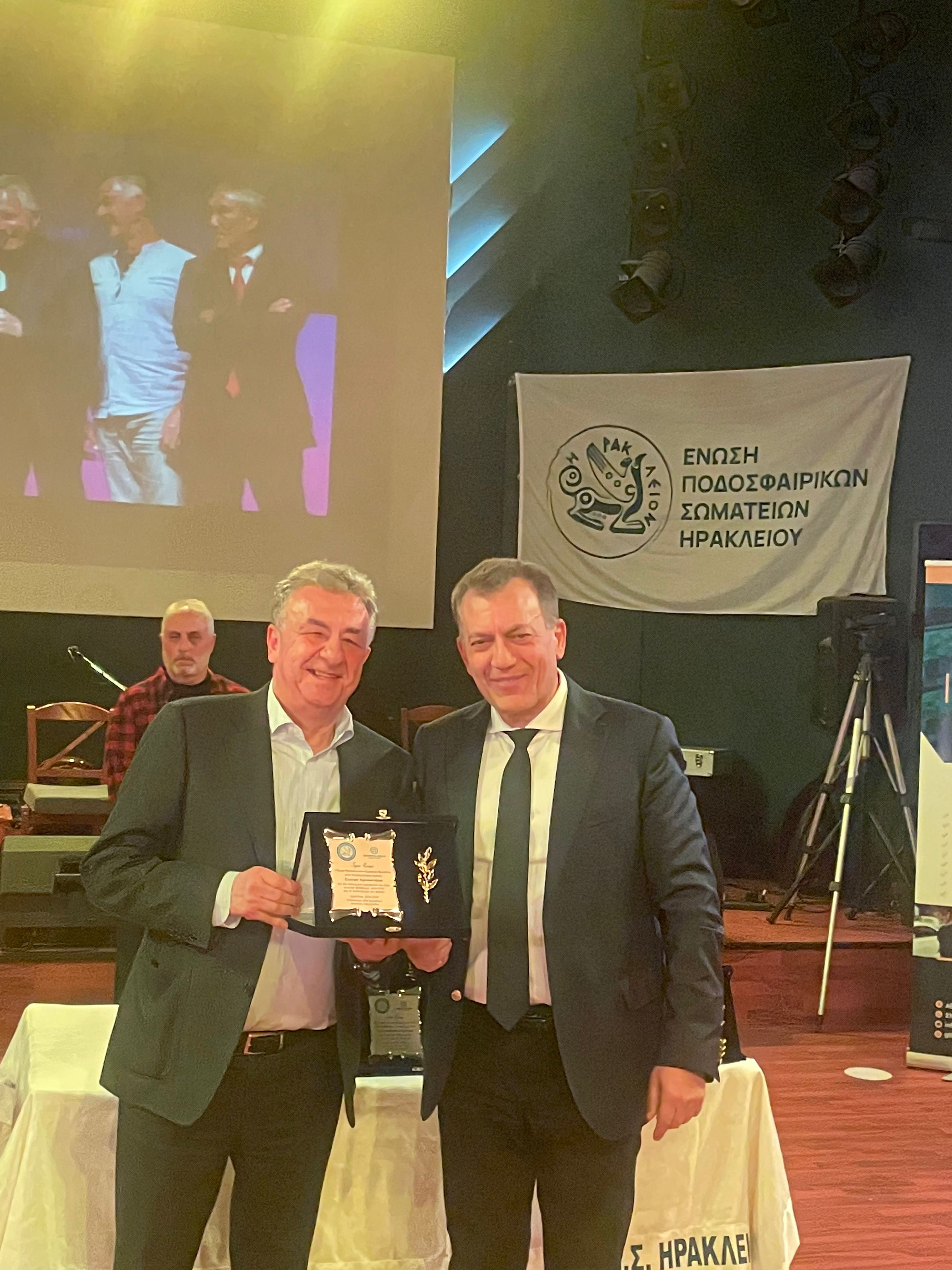 Βραβεύτηκε επίσης ο παλαίμαχος ποδοσφαιριστής και τουριστικός επιχειρηματίας, Δημήτρης Τζιράκης, για τη διαχρονική του συμβολή στον αθλητισμό και την κοινωνία.