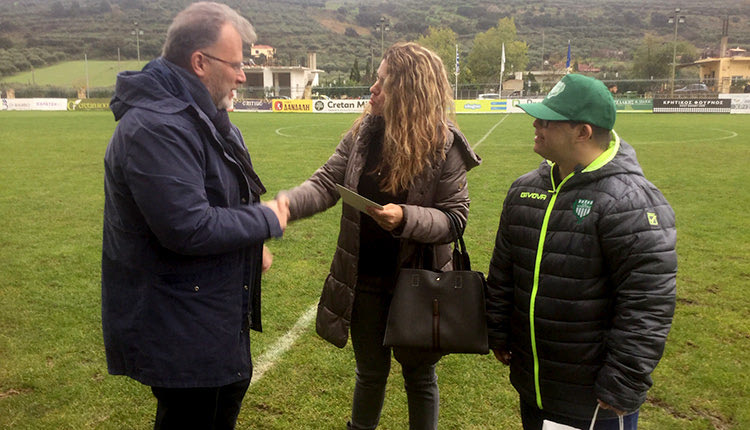 Εντός του γηπέδου ο αγαπητός σε ολους Νίκος Μαστοράκης με μεγάλη χαρά παρέλαβε το δώρο του, χειροκροτούμενος απ’όλους τους θεατές, τον περιφερειάρχη Σταύρο Αρναουτάκη, τον δήμαρχο Μανόλη Κοκοσάλη, παράγοντες και παίκτες.