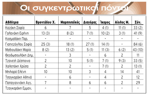 Ο Ανδρογέας στο ειδικό τουρνουά έφερε τα εξής αποτελέσματα: