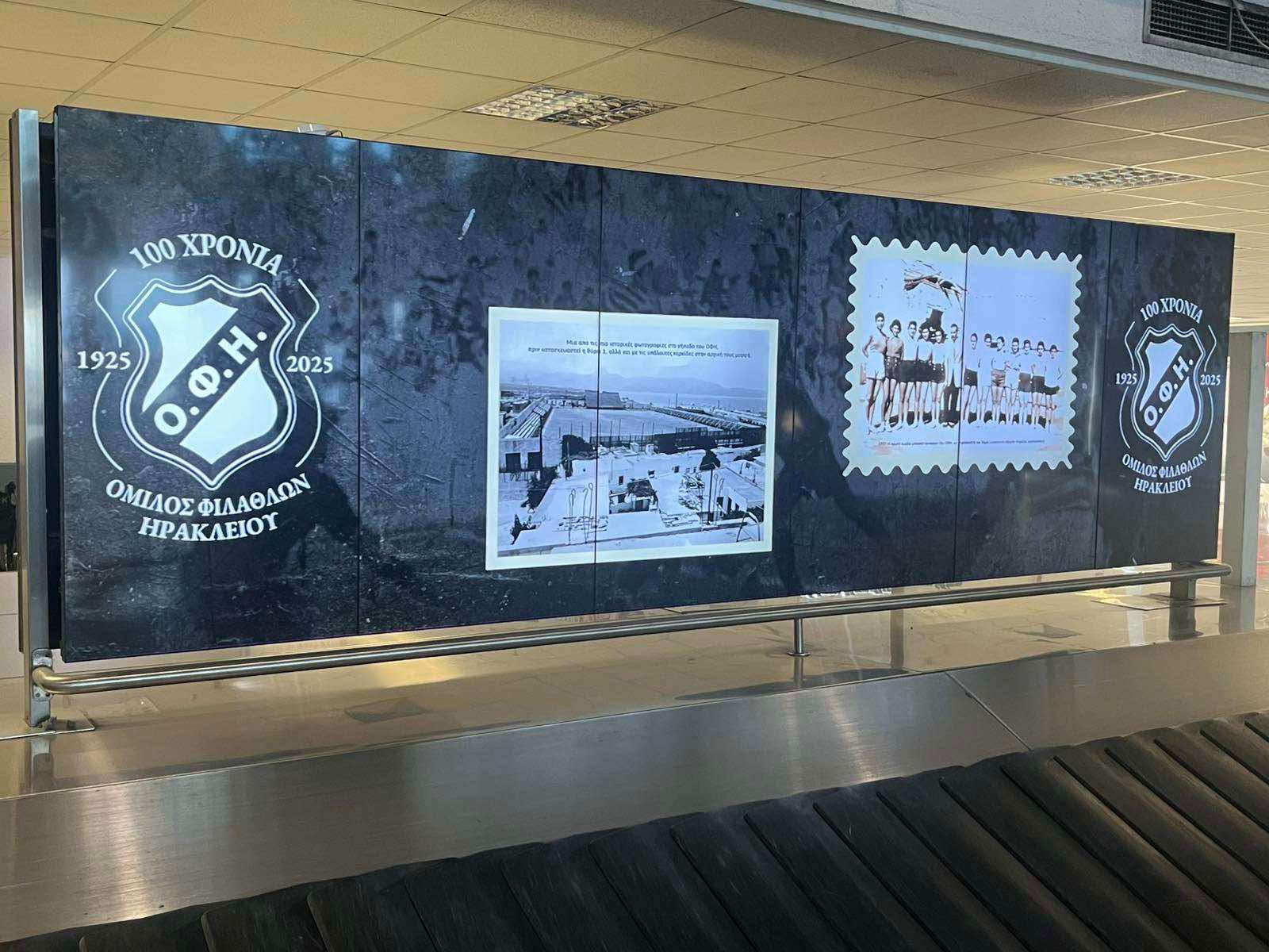 Με ενέργειες του Ερασιτέχνη ΟΦΗ, εδώ και αρκετές μέρες στις οθόνες του αεροδρομίου “Νίκος Καζαντζάκης” του Ηρακλείου, στην αίθουσα αφίξεων, προβάλλονται ιστορικές φωτογραφίες, από τα 100 χρόνια του ΟΦΗ.