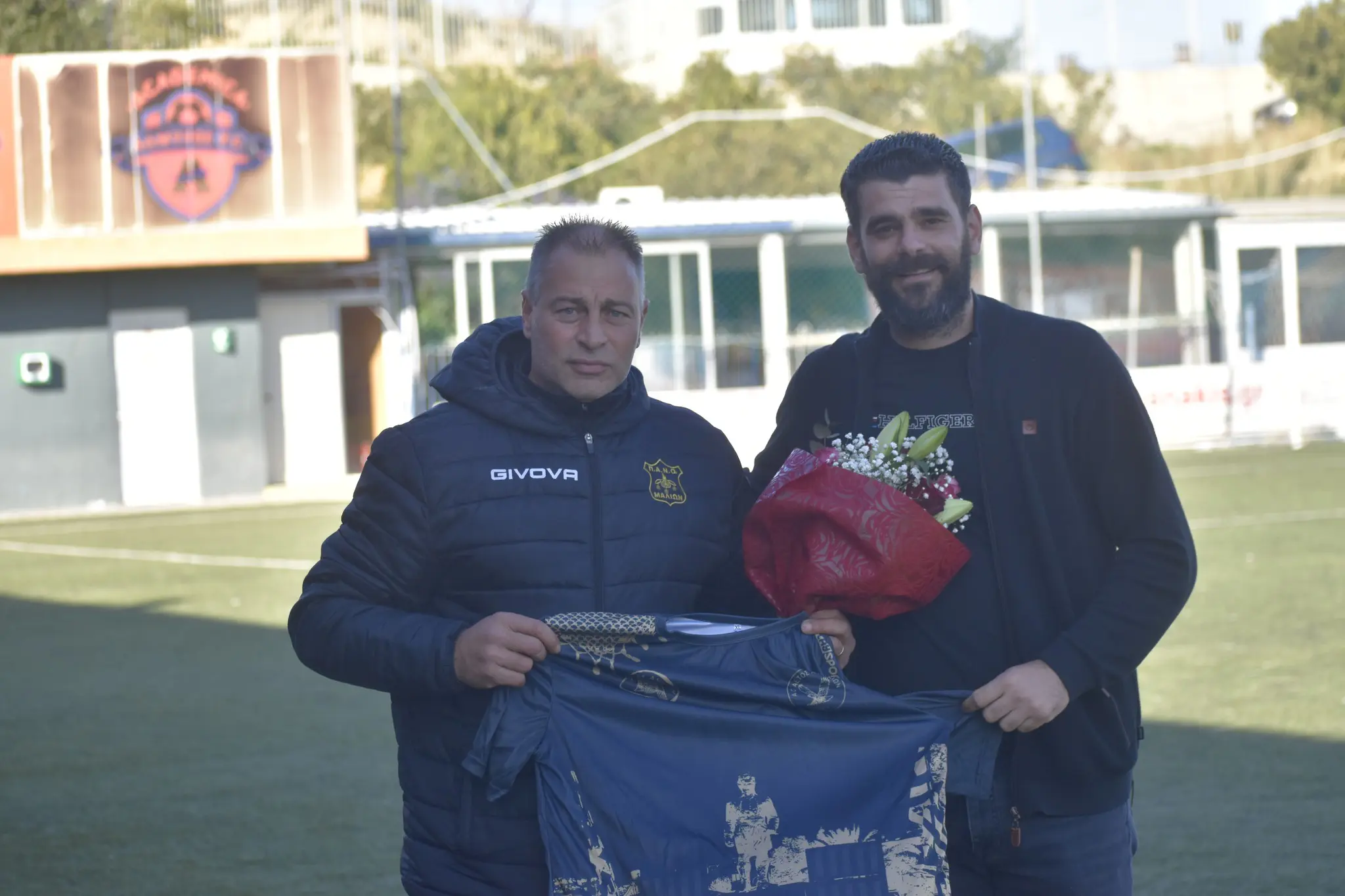 Ο Αετός Ανωγείων τίμησε τον προπονητή του ΠΑΝΟΜ, Σταμάτη Μαματζάκη πριν από την έναρξη του μεταξύ τους παιχνιδιού για τη 17η αγωνιστική της Α1 ΕΠΣΗ.