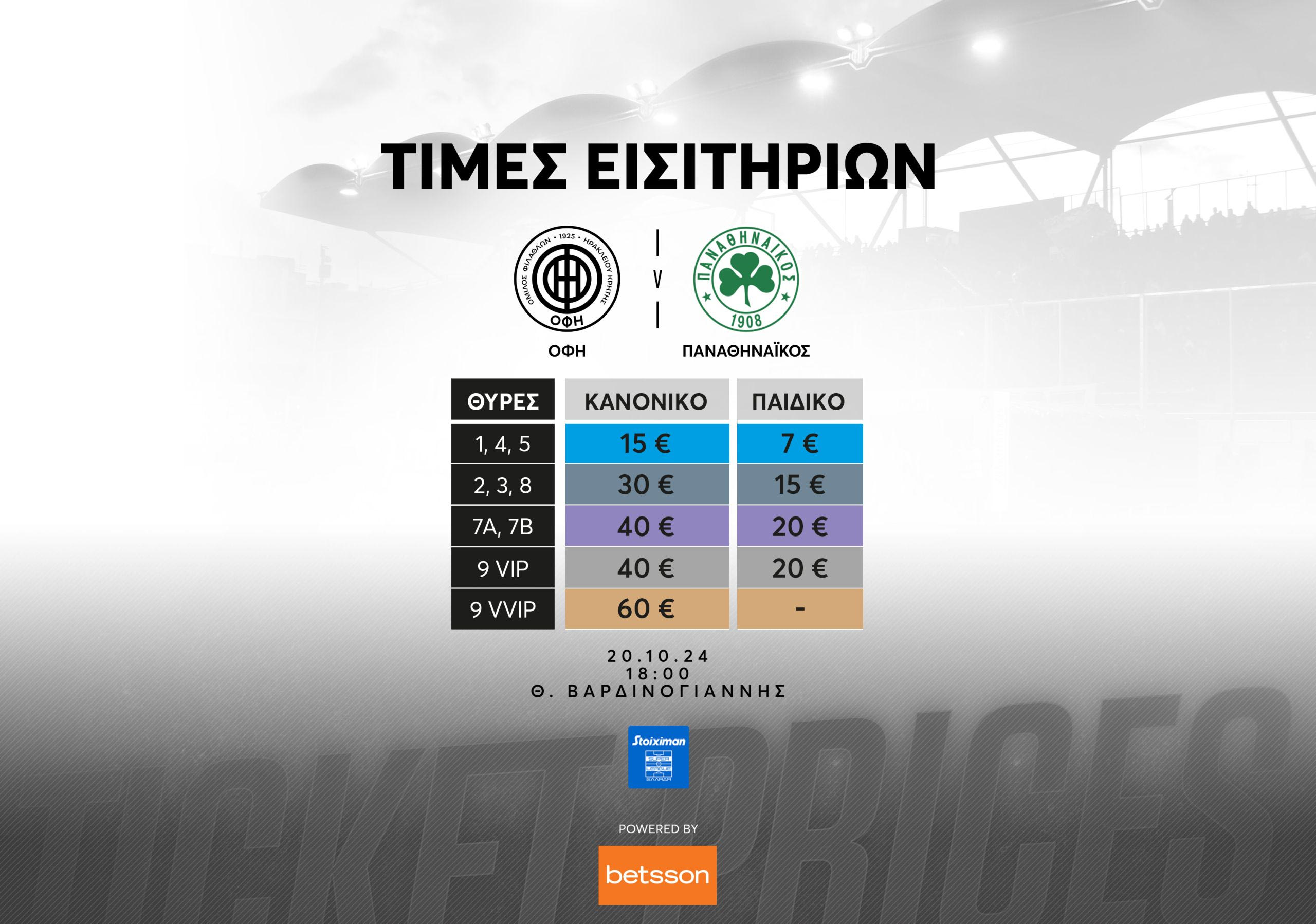 Σε κυκλοφορία τέθηκαν τα εισιτήρια του αγώνα με τον Παναθηναϊκό ( 20/10, 18:00), για την 8η αγωνιστική του πρωταθλήματος.
