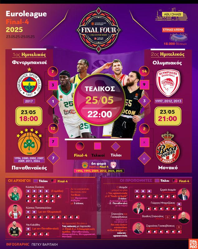 Το Final-Four της Eυρωλίγκα έφτασε! Παναθηναϊκός, Ολυμπιακός, Μονακό και Φενερμπαχτσέ θα τα δώσουν όλα για τη κατάκτηση του τροπαίου στο Αμπου Ντάμπι.