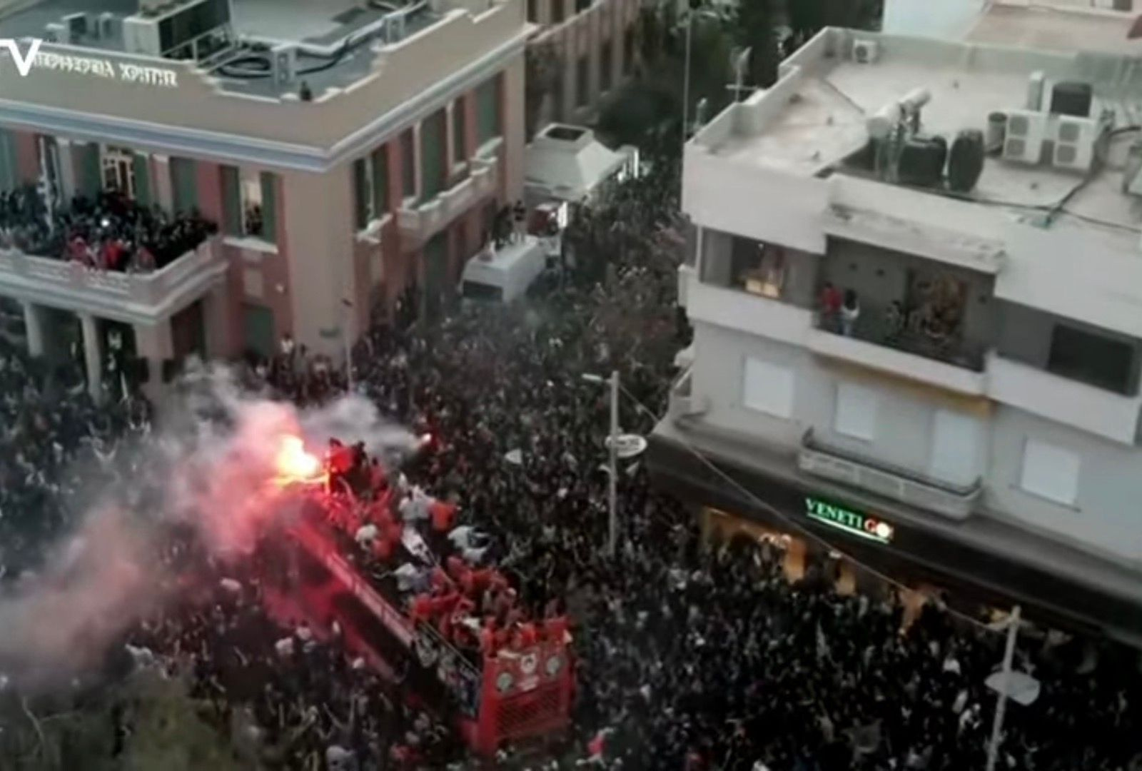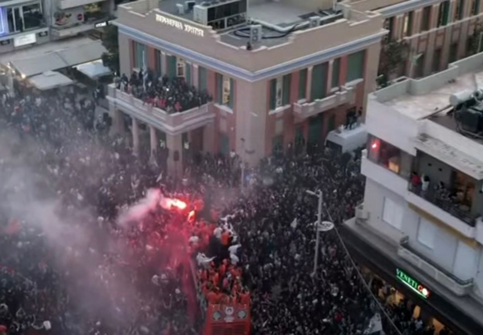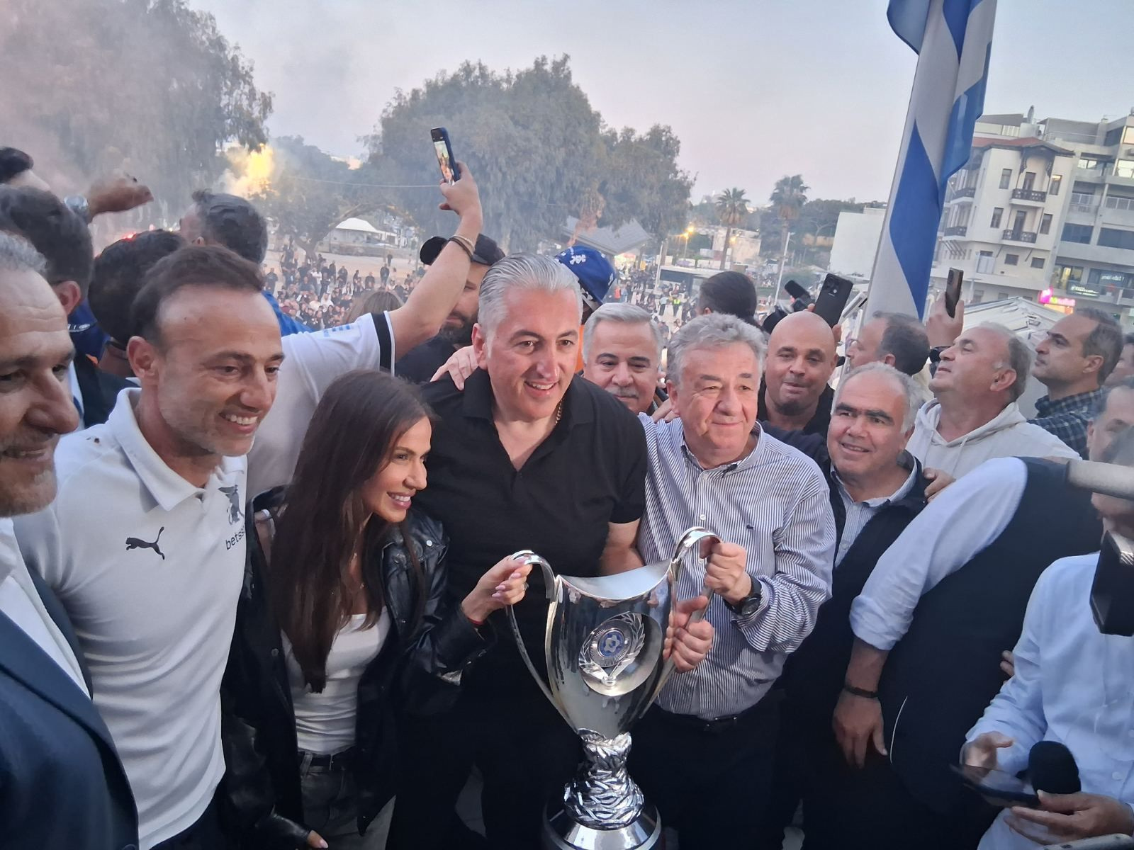 «Αυτό το κύπελλο είναι για σας», είπε ο Μιχάλης Μπούσης στον κόσμο που είχε συγκεντρωθεί στην πλατεία Ελευθερίας.