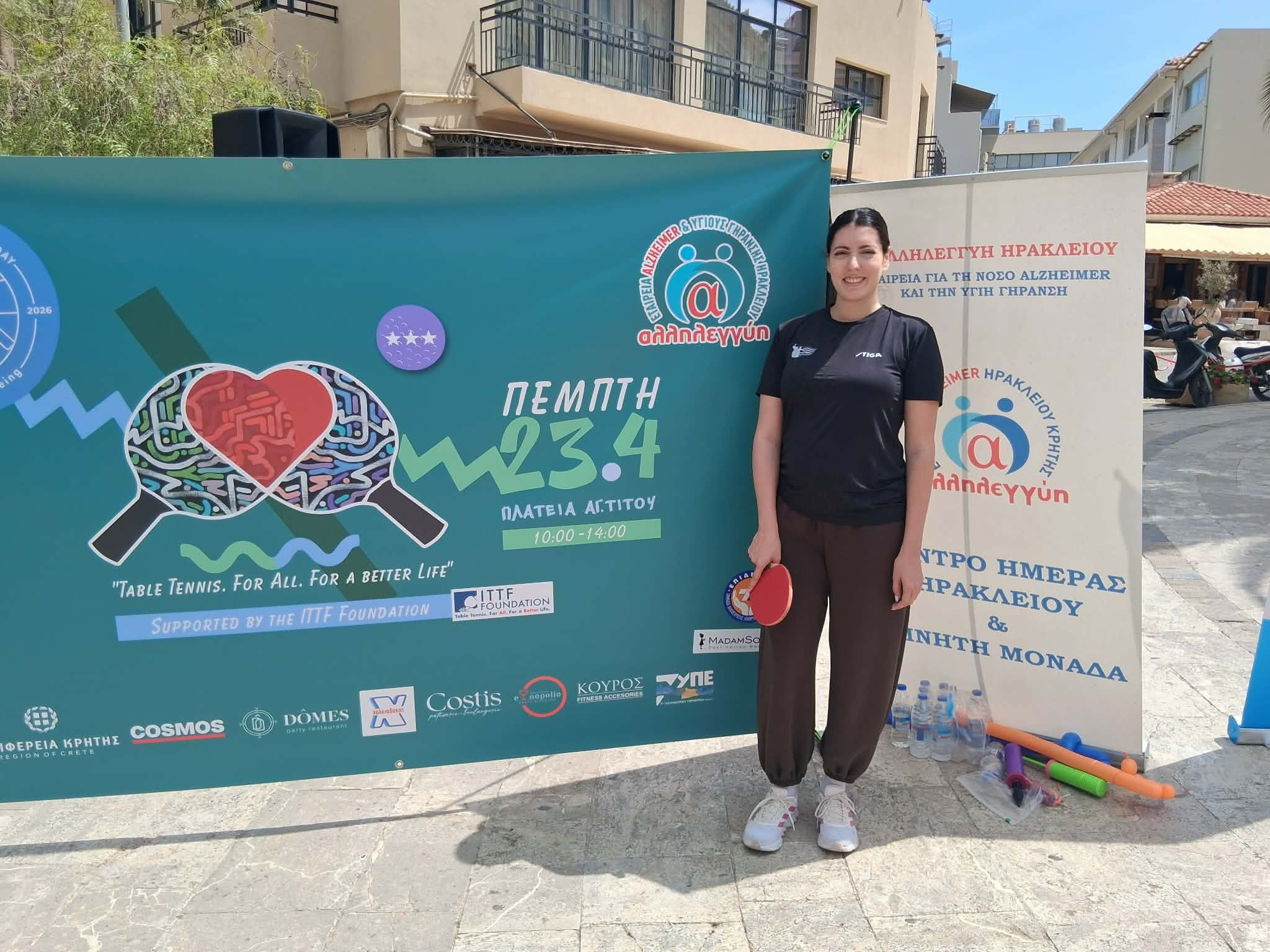 Το παρών στην Πλατεία του Αγίου Τίτου, έδωσε και η αθλήτρια της Εθνικής ομάδας πινγκ – πονγκ Κωνσταντίνα Παρίδη, η οποία …έδειξε τα μυστικά του αθλήματος στον κόσμο.