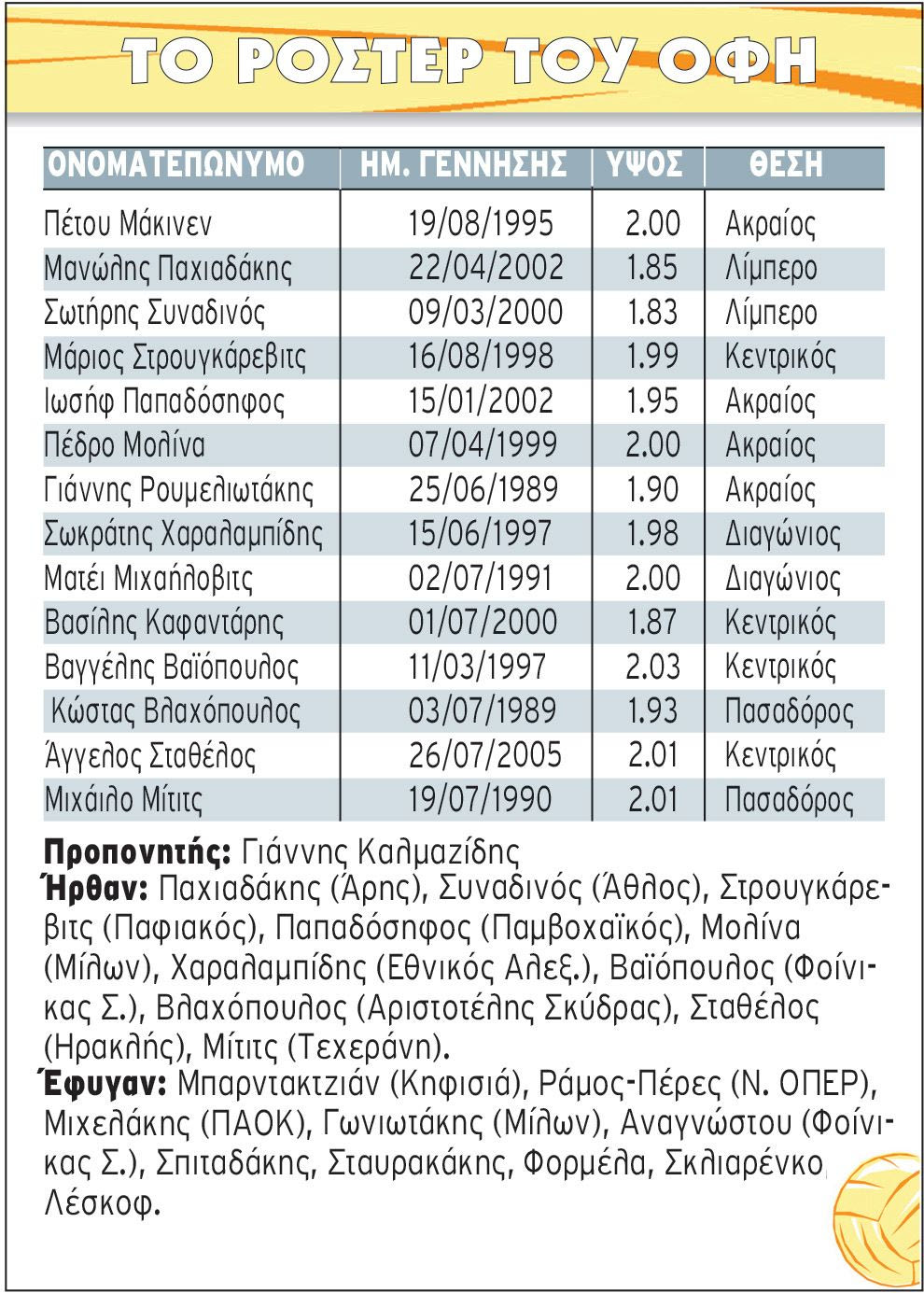 Ο ΟΦΗ μπαίνει στη μάχη της Volley League (από τη 2η αγωνιστική λόγω της συμμετοχής του στο Βαλκανικό Κύπελλο) και το πρώτο του παιχνίδι, είναι σήμερα (5μμ) στην έδρα του Μίλωνα.