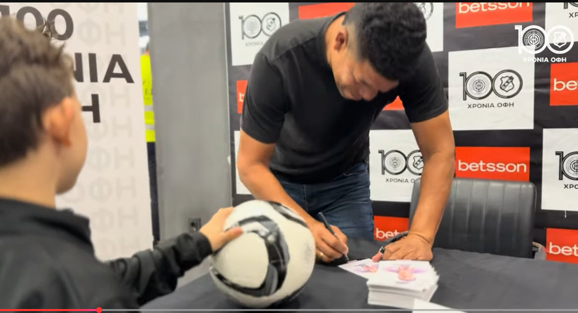 Δύο παίκτες που έχουν γράψει ιστορία με τον ΟΦΗ, επέστρεψαν σήμερα στο γήπεδο “Θεόδωρος Βαρδινογιάννης” με αφορμή τα 100 χρόνια του συλλόγου, μοιράζοντας αυτόγραφα και πολλά χαμόγελα στους φίλους της ομάδας.