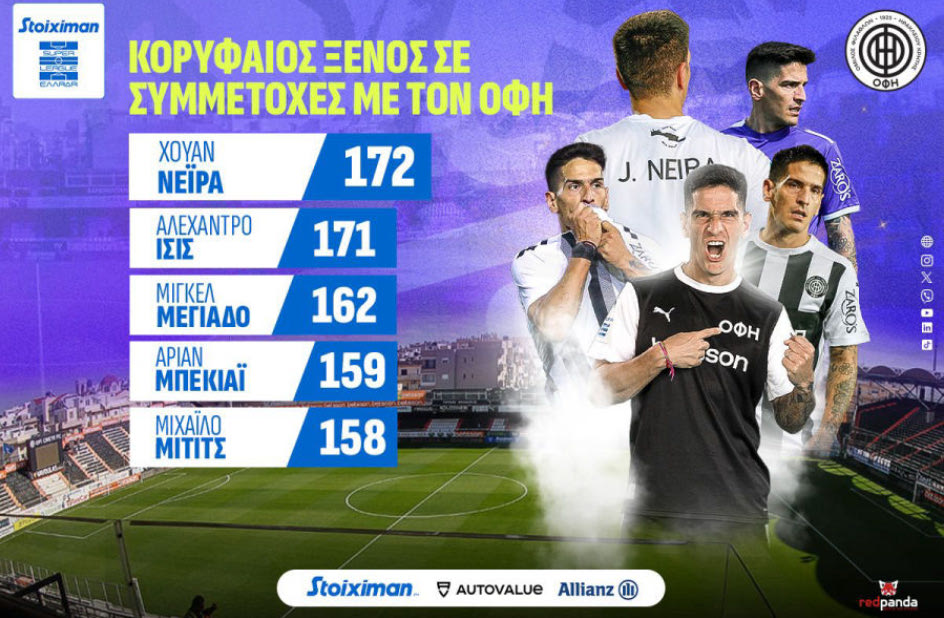 Ο Χουάν Νέιρα στην αναμέτρηση Αστέρας – ΟΦΗ 2-1 στις 13 Απριλίου 2025 είχε πατήσει κορυφή και στη λίστα των ποδοσφαιριστών με τις περισσότερες συμμετοχές στην Α’ Εθνική/Super League. Σε εκείνη την αναμέτρηση ξεπέρασε τον Μιγκέλ Μεγιάδο, ο οποίος είχε 146 συμμετοχές με τα χρώματα του ΟΦΗ στο πρωτάθλημα. Πλέον, με τη συμμετοχή του απέναντι στον ΠΑΟΚ, ο Χουάν Νέιρα έφτασε τις 150 εμφανίσεις στη Super League.