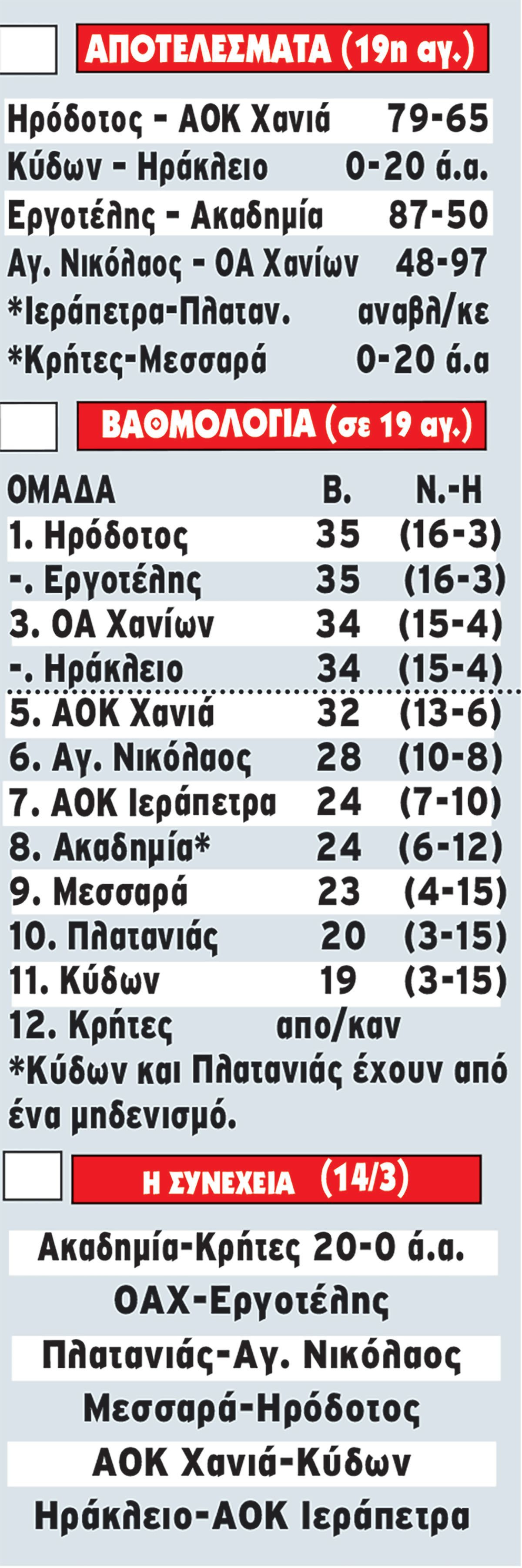 ΗΡΟΔΟΤΟΣ (Κριμιλης, Μακράκης): Λαμπράκης 8(1), Μαχαιριανάκης 11(1), Σμύρνης 17(1), Αντωνογιαννάκης 8, Κυρκάκης 5, Τέιλορ 3, Φιολιτάκης 12, Κάλλας 10, Κωστακίδης 3, Κατσιαμάγκος 2, Τσιναρίδης, Κριθινάκης.