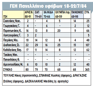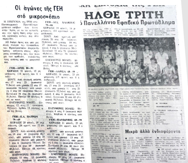 Η “χρυσή φουρνιά” των Εφήβων της ΓΕΗ ήρθε 3η στο Πανελλήνιο Πρωτάθλημα στην Άρτα (18-22/7/84), μετά τον Πανιώνιο των Χριστοδούλου, Γασπαρη που βγήκε πρωταθλητής και τον Άρη Θεσσαλονίκης του Ρωμανίδη.