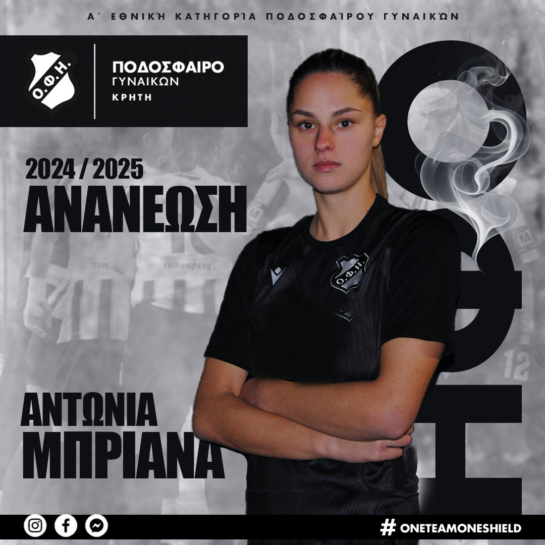 Με μεγάλη χαρά ανακοινώνουμε την ανανέωση της συνεργασίας μας με την διεθνή επιθετικό Αντωνία Μπριάνα για ακόμα μια χρονιά.