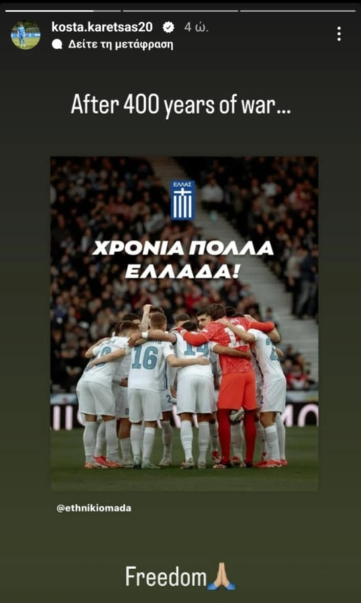 Χρόνια πολλά στην Ελλάδα ευχήθηκε ο Κωνσταντίνος Καρέτσας με δύο story στο Instagram.