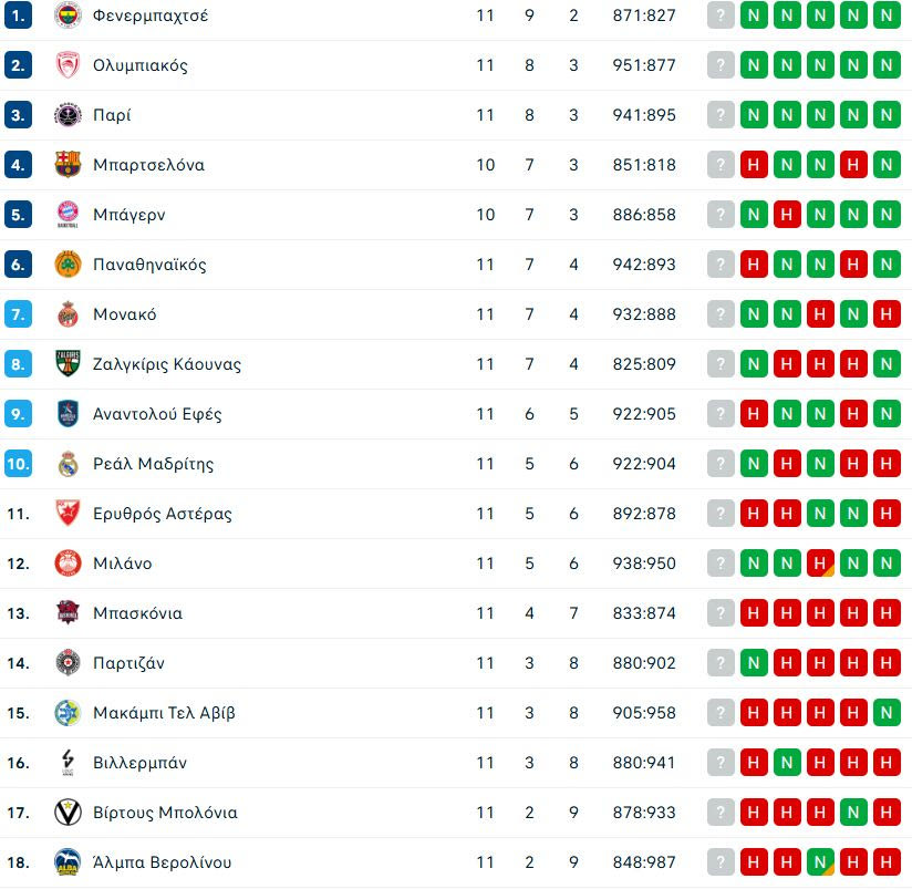 ΠΑΝΑΘΗΝΑΪΚΟΣ (Σερέλης): Καλαϊτζάκης, Μπράουν 11 (1), Σλούκας 5 (1), Παπαπέτρου 2, Γκραντ 8 (2), Ναν 19 (15), Λεσόρ 10, Ερνανγκόμεθ 4, Μήτογλου 2, Γιούρτσεβεν 16