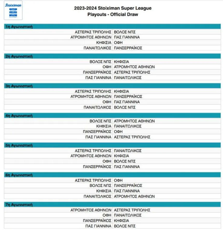 Αναλυτικά το πρόγραμμα των πλέι άουτ
