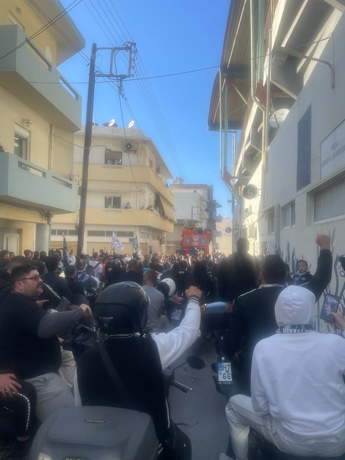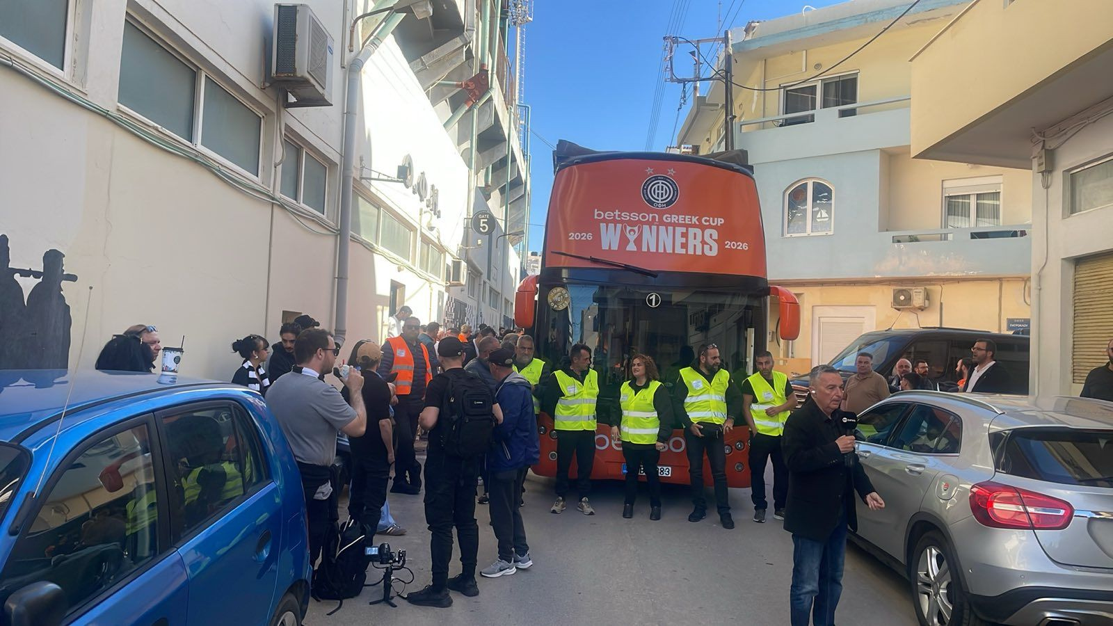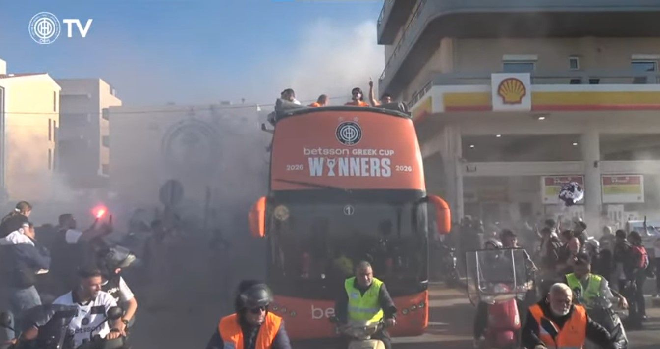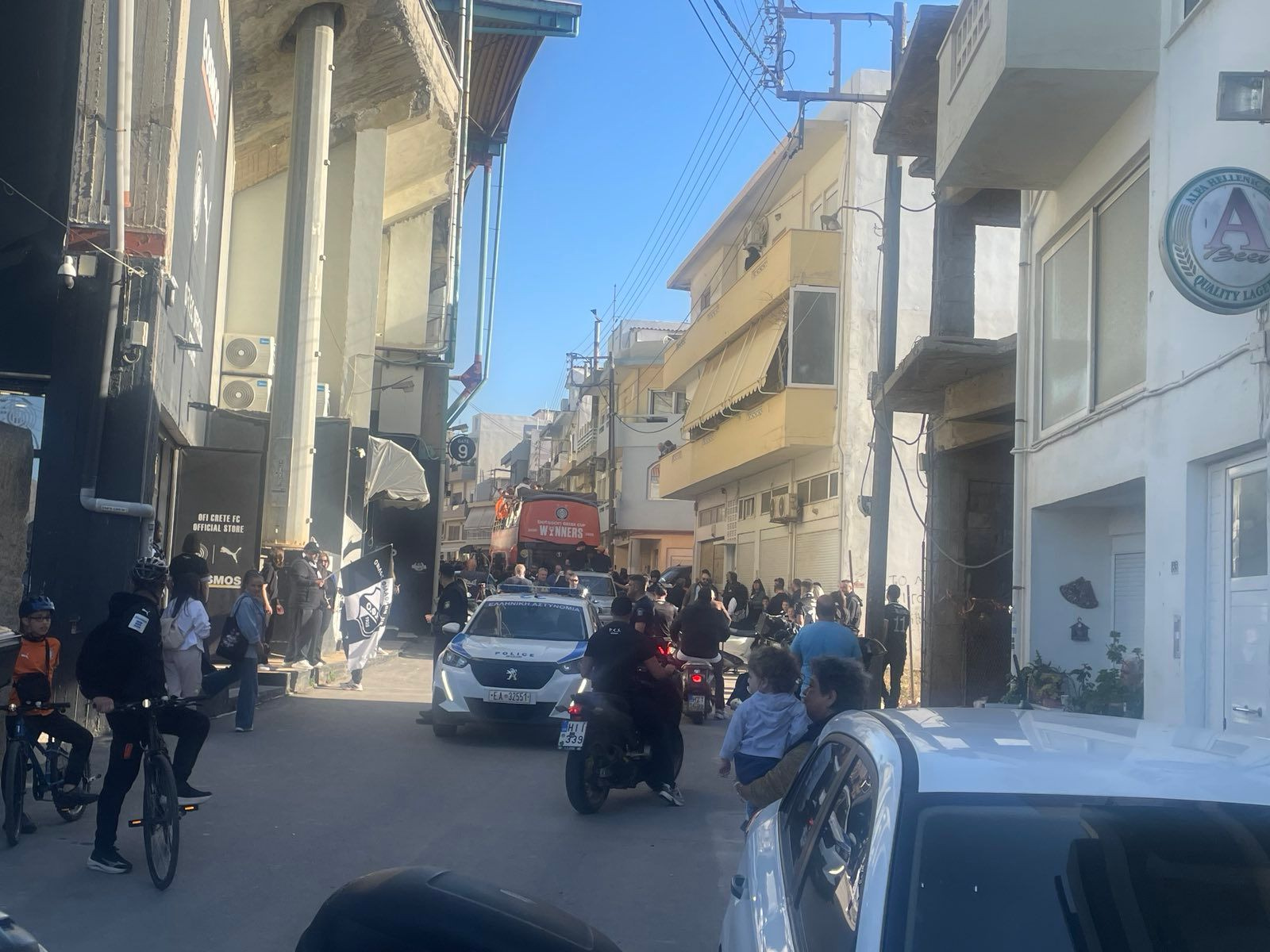 Το Ηράκλειο έχει βγει στους δρόμους για να αποθεώσει τους θριαμβευτές του Πανθεσσαλικού, τον Χρήστο Κόντη και τους παίκτες του για την κατάκτηση του Κυπέλλου Ελλάδας απέναντι στον ΠΑΟΚ.