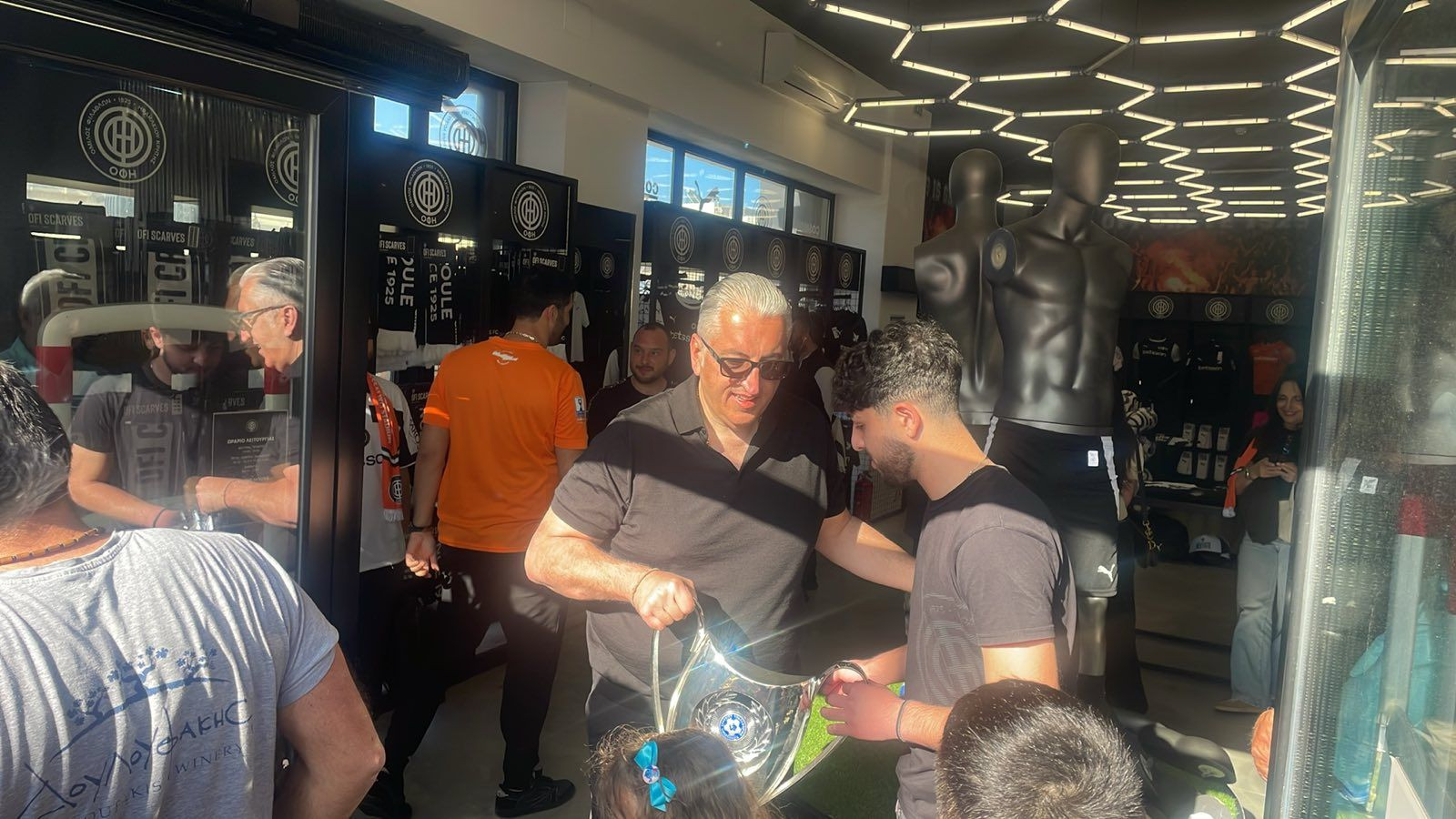 Δεκάδες φίλοι του ΟΦΗ βρέθηκαν στα Καμίνια προκειμένου να δουν από κοντά τους και να συγχαρούν τους παίκτες και όλο το τεχνικό επιτελείο που μετά από 39 χρόνια έφεραν την κούπα στο Ηράκλειο.