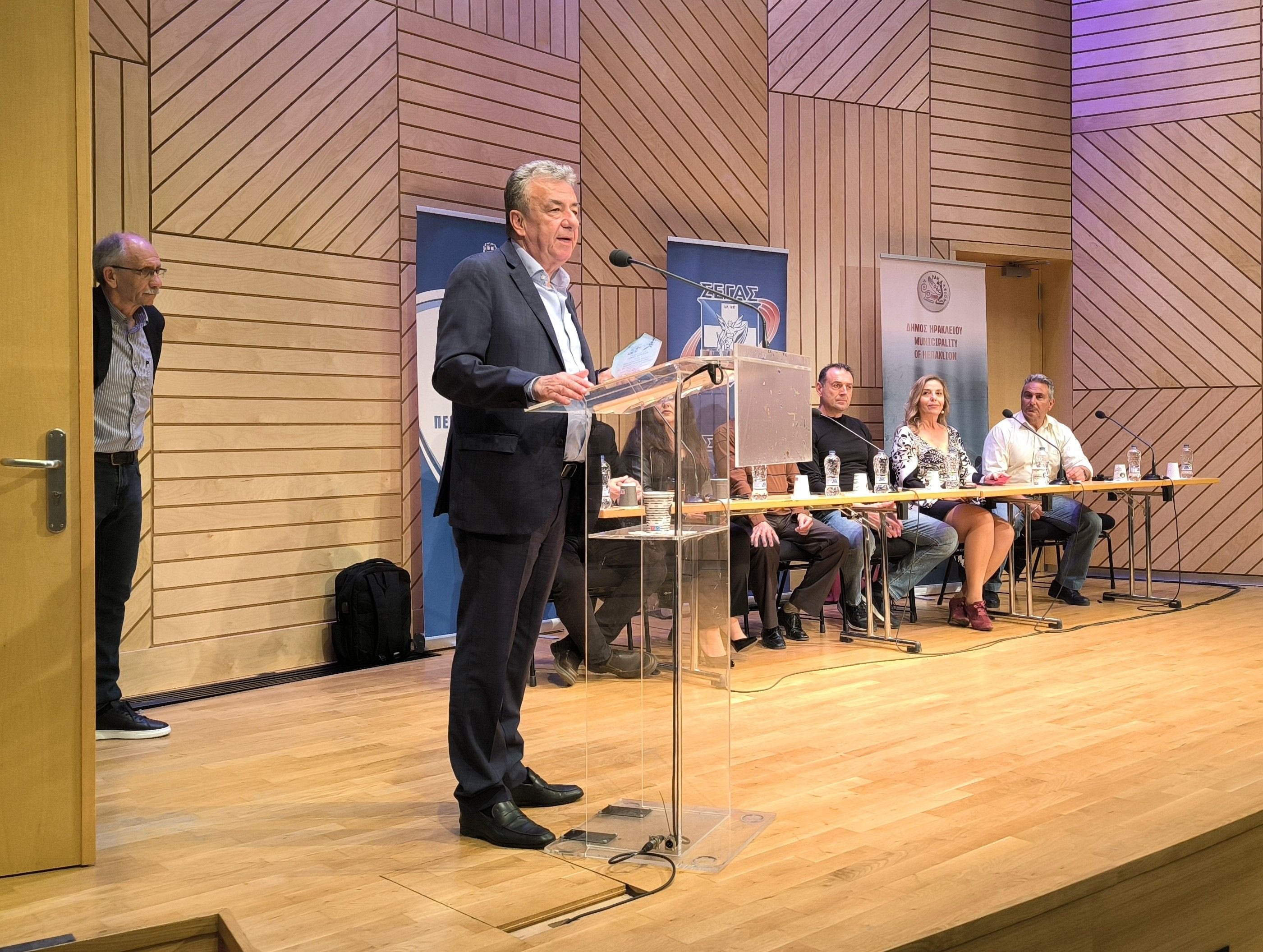Από την πλευρά του ο Αναπληρωτής Περιφερειάρχης Κρήτης Γιώργος Πιτσούλης που επίσης τιμήθηκε για την συνεισφορά του στον αθλητισμό μέσω και του προγράμματος «Ζωή» ανέφερε: «θέλω να ευχαριστήσω τον ΕΑΣ ΣΕΓΑΣ Κρήτης για την τιμητική βράβευση. Να επισημάνω την επιτυχημένη μας συνεργασία στον τομέα της πρόληψης με την πιο πρόσφατη, να είναι αυτή του καρδιολογικού ελέγχου νέων αθλητών που πραγματοποιείται στο πλαίσιο του προγράμματος «Ζωή» της Περιφέρειας Κρήτης. Καθώς αναπόσπαστο κομμάτι της πρόληψης είναι ο αθλητισμός θα ήθελα να προσκαλέσω μικρούς και μεγάλους να συμμετάσχουν στην αυριανή γιορτή του αθλητισμού που είναι το Run Greece».