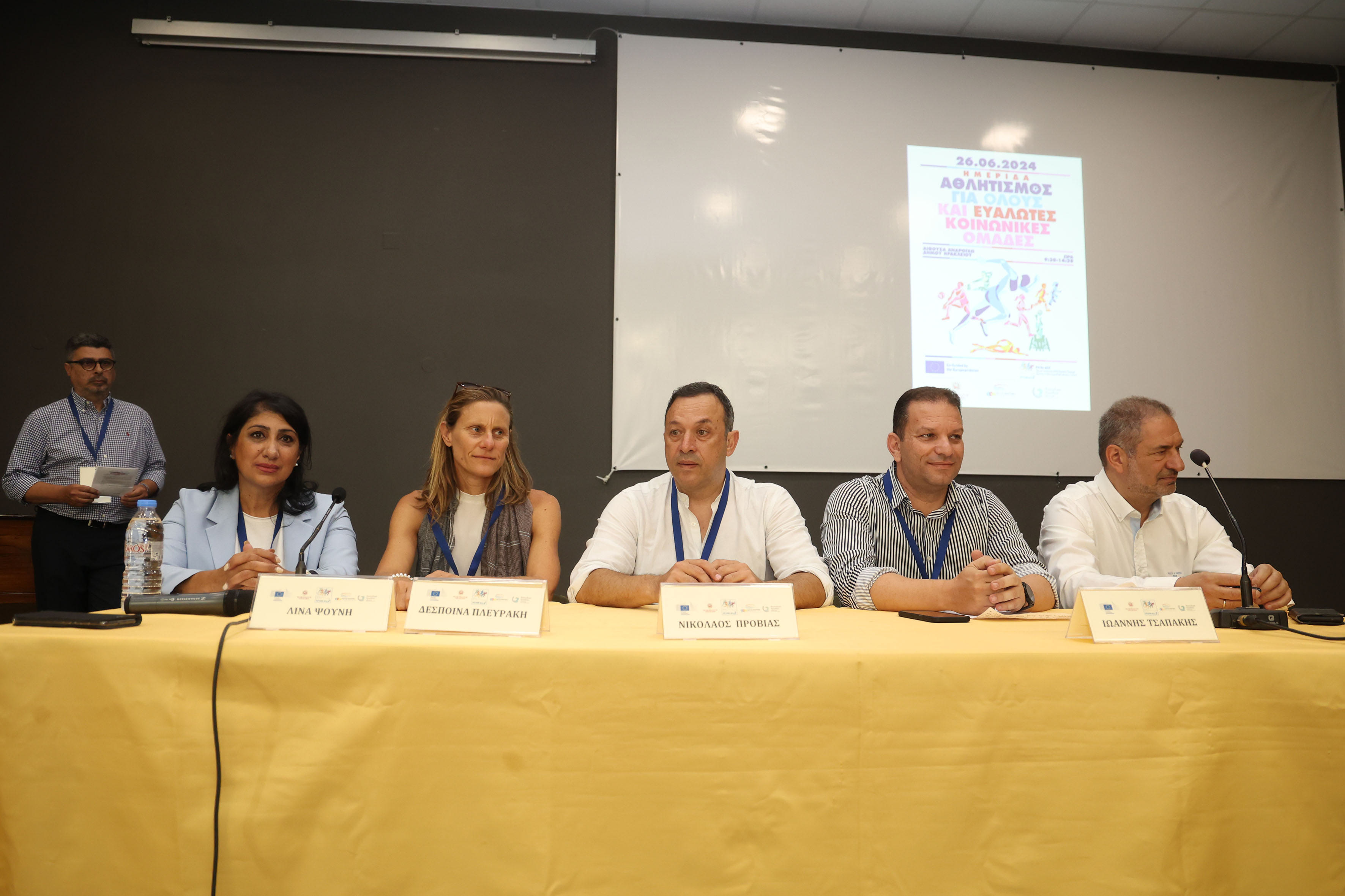 Παρουσία του Δημάρχου Ηρακλείου Αλέξη Καλοκαιρινού, της εκπροσώπου του φορέα εποπτείας του προγράμματος FIT for ALL 2 από την Ευρωπαϊκή Ένωση Izabela Pelczynska, του προϊστάμενου της Διεύθυνσης άθλησης για Όλους της ΓΓΑ Γιώργου Πίγκου αλλά και εκπροσώπων της τοπικής αυτοδιοίκησης από όλη την Κρήτη αναπτύχθηκαν τόσο το πρόγραμμα της πολιτείας για το πρόγραμμα «Αθλητισμός για όλους» όσο και η προσπάθεια ένταξης των ευάλωτων κοινωνικών ομάδων στις κοινωνικές δομές της πόλης μέσω του αθλητισμού.