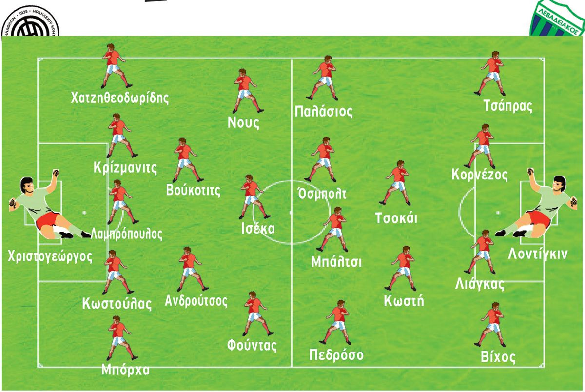 Μια πιθανή ενδεκάδα για τον Λεβαδειακό: Λοντίγκιν, Τσάπρας, Λιάγκας, Κορνέζος, Βίχος , Κωστή, Τσοκάι, Παλάσιος, Μπάλτσι, Πεδρόσο, Όζμπολτ.