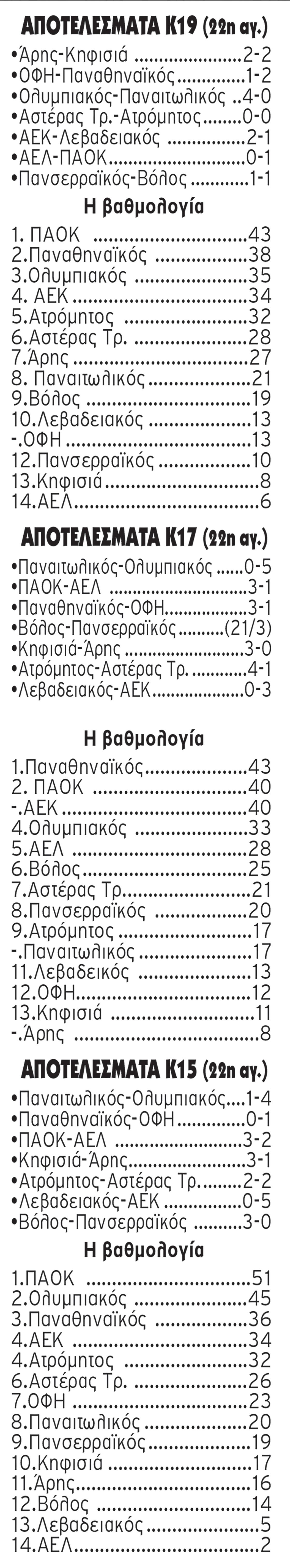 Η Κ-17 του ΟΦΗ αν και προηγήθηκε με γκολ του Μάρα στο 22΄, η Κ17 γνώρισε την ήττα από την αντίστοιχη του Παναθηναϊκού, με σκορ 3-1 στο γήπεδο Τραχώνων, στο πλαίσιο της 22ης αγωνιστικής του πρωταθλήματος Σούπερ Λιγκ.