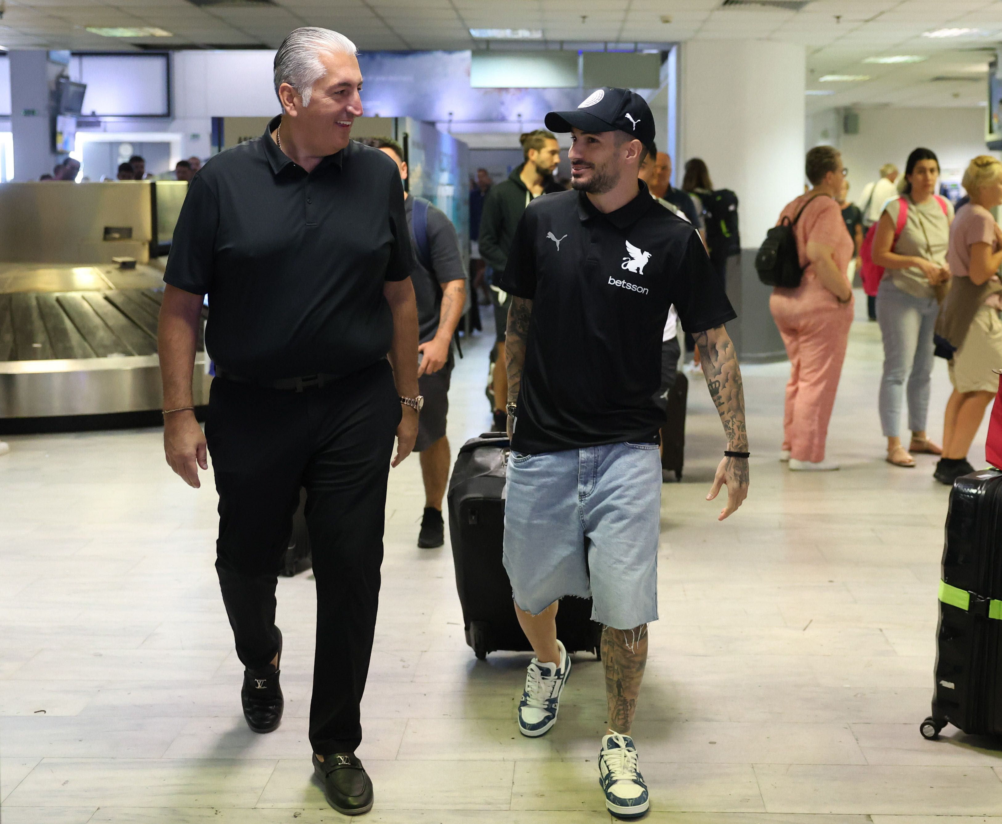 Το μεγάλο μεταγραφικό απόκτημα του ΟΦΗ εμφανίστηκε ευδιάθετο στο αεροδρόμιο “Νίκος Καζαντζάκης” όπου αφίχθη μαζί με τον μεγαλομέτοχο του ΟΦΗ Μιχάλη Μπούση και τον αντιπρόεδρο της ΠΑΕ Δημήτρη Μπούση.