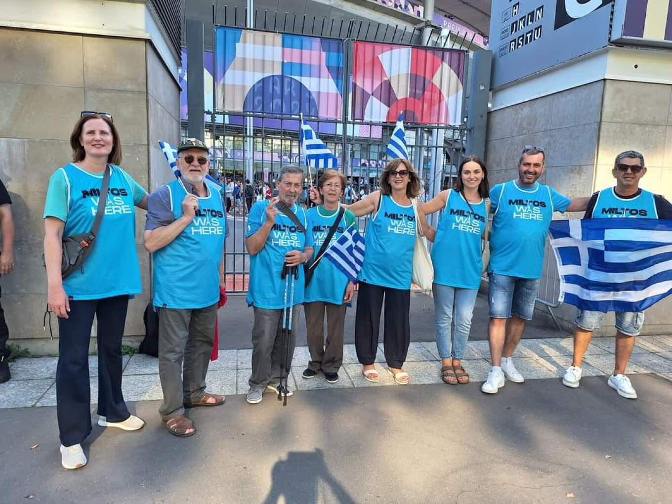 Όλοι τους φορούσαν συλλεκτικά μπλουζάκια τα οποία έφτασαν από τα Γρεβενά στο Παρίσι! Τα μπλουζάκια δημιουργήθηκαν για να τιμήσουν τον χρυσό Ολυμπιονίκη αφού όλοι ήταν σίγουροι ότι ο Μίλτος θα τα καταφέρει μετά το Τόκιο και στο Παρίσι.