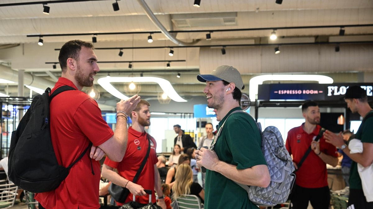 Οι αποστολές των δύο ομάδων συναντήθηκαν στο αεροδρόμιο πριν την αναχώρηση τους με συζητήσεις και χαμόγελα να έχουν τον πρώτο λόγο μεταξύ των παικτών και των επιτελείων.