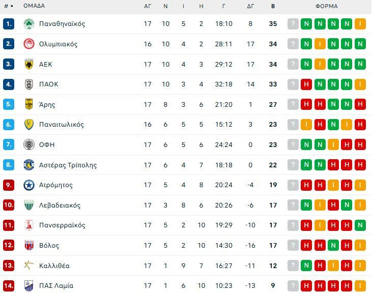 Ο Παναθηναϊκός με αυτό το τρίποντο ανέβηκε πρώτος έχοντας 35 βαθμούς, στο +1 από τον Ολυμπιακό και την ΑΕΚ με ένα παιχνίδι περισσότερο από τους ερυθρόλευκους. Ο ΠΑΟΚ είναι τέταρτος με 33 βαθμούς.