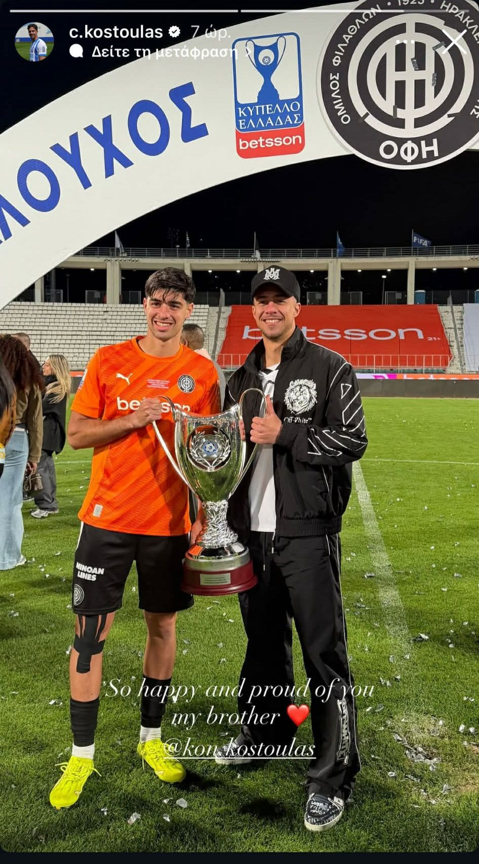 Στο Πανθεσσαλικό για το τελικό του Κυπέλλου βρέθηκε χθες ο Χαράλαμπος Κωστούλας και πανηγύρισε μαζί με τον αδερφό του, Κωνσταντίνο Κωστούλα, αλλά και τον Ανδρούτσο τον τίτλο του ΟΦΗ.