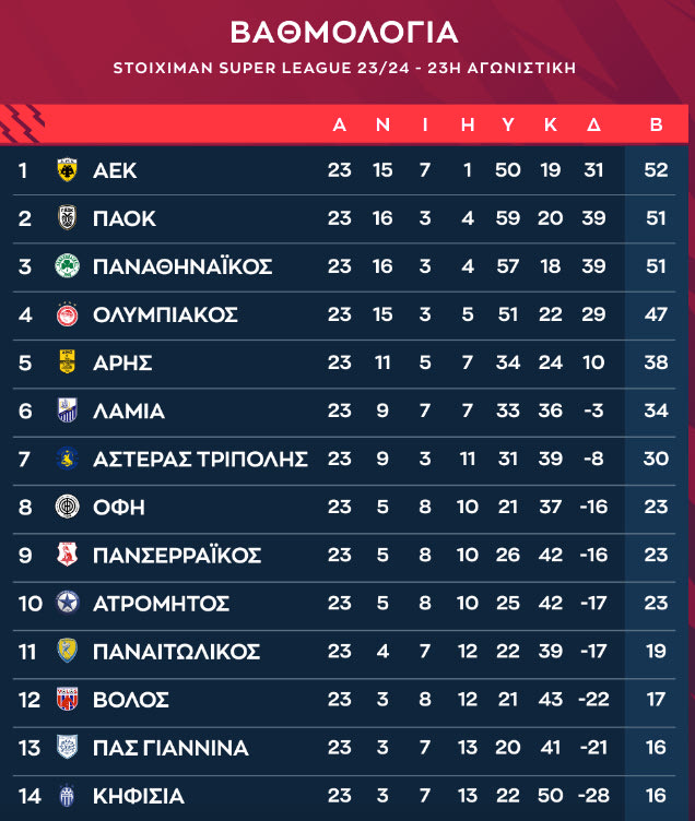 Τα αποτελέσματα της 23ης αγωνιστικής: