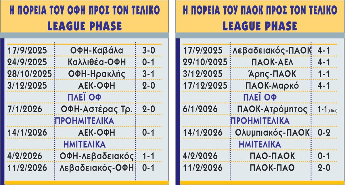 Ο ΠΑΟΚ από την πλευρά του δεν ξεκίνησε καλά στην League Phase, στην οποία τερμάτισε στην 8η θέση και χρειάστηκε να παίξει στα πλέι οφ. Στο πρώτο του παιχνίδι έχασε με 4-1 από τον Λεβαδειακό εκτός έδρας, ενώ για να πάρει την πρόκριση στα προημιτελικά απέκλεισε στα πλέι οφ τον Ατρόμητο στα πέναλτι με 5-4 (1-1 κανονική διάρκεια χωρίς παράταση) στην Τούμπα.