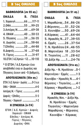 Aκάθεκτη… καλπάζει προς τον τίτλο η Χαραυγή, που συνεχίζει με το εντυπωσιακό απόλυτο (22/22) στη Β1! Ο Πήγασος έβαλε δύσκολα στην πρωτοπόρο, αλλά η Χαραυγή τα κατάφερε και πέρασε νικηφόρα από το γήπεδο του Πανεπιστημίου / Περιφέρειας με 2-1. Με τον Ελευθερίου να πετυχαίνει και τα τέσσερα γκολ, ο δεύτερος ΟΦΑ νίκησε με 4-0 τον ΟΦΑΜ στο Αρκαλοχώρι. Με το ίδιο σκορ (4-0) κέρδισε και ο τρίτος της βαθμολογίας Αστέρας την Γόρτυνα στην Μυρτιά. Πλούσιο θέαμα και οκτώ γκολ πρόσφεραν Δαφνές και Ελπίδες με τους γηπεδούχους να επικρατούν της ομάδας του Καρτερού με 5-3. Με 3-0 πήρε το εκτός έδρας τρίποντο χωρίς να… ιδρώσει ο Δωριέας καθώς ο ΕΓΟΗ / Α.Ε. Κρητών έχει αποβληθεί από το πρωτάθλημα.