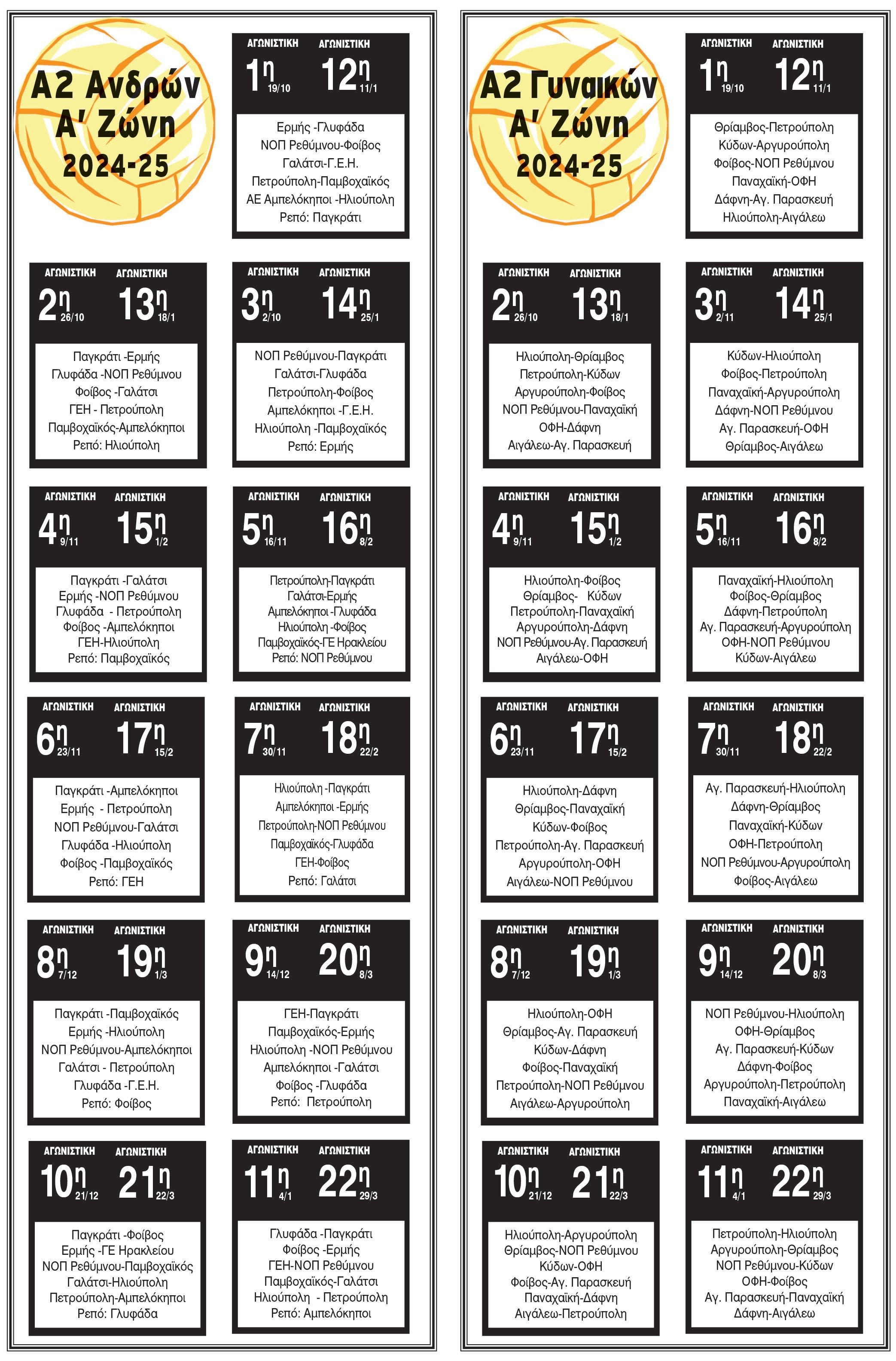 Στον …χορό των κληρώσεων μπήκαν και η Α2 βόλεϊ ανδρών και γυναικών, με τις αρκετές Κρητικές ομάδες που συμμετέχουν, να μαθαίνουν τη σειρά των παιχνιδιών τους.
