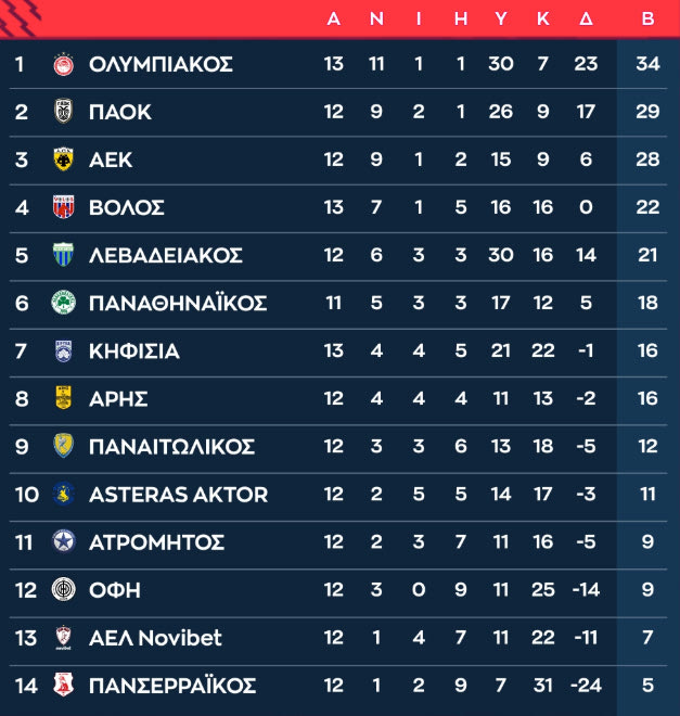 Τα αποτελέσματα της 13ης αγωνιστικής