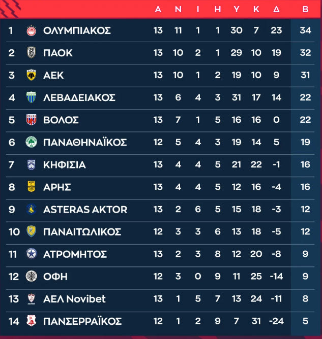 Τα αποτελέσματα της 13ης αγωνιστικής