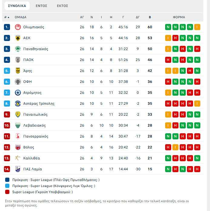 Στα playoffs τίτλου (1-4) μπαίνουν οι ομάδες: