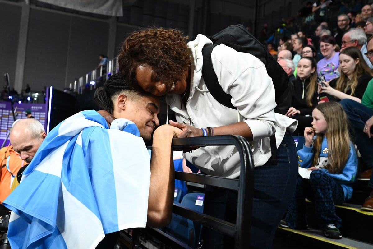 Κανείς δεν στεναχωρήθηκε όμως. Ο Σαμ Κέντρικς τον αγκάλιασε πάνω στο στρώμα και τον πέταξε κάτω πανηγυρίζοντας. Η μητέρα του Σάρα, που έφτασε στη Γλασκόβη το βράδι του Σαββάτου, έσπασε τα.. μπλόκα και όρμησε στις κάτω σειρές των κερκίδων να αγκαλιάσει το καμάρι της.