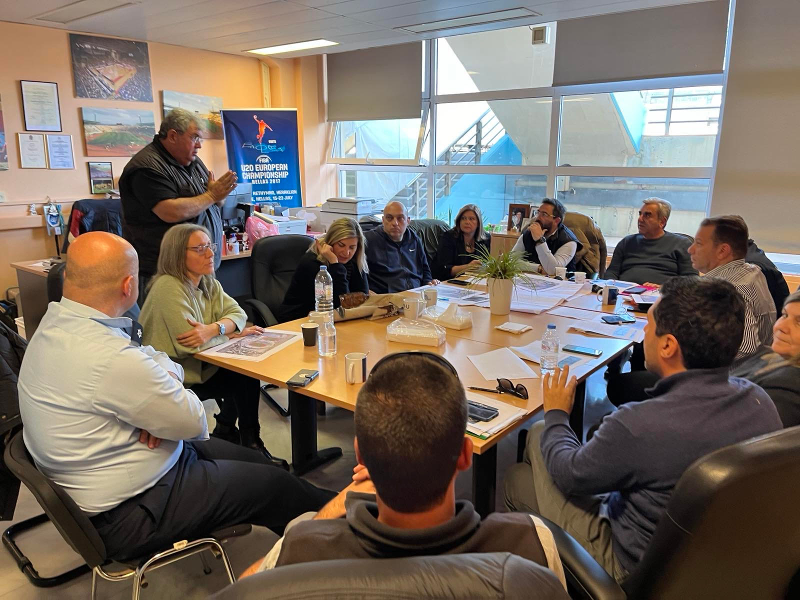 Με τη συμμετοχή όλων των εμπλεκομένων φορέων του Δήμου Ηρακλείου (Αθλητισμού, Τεχνικής Υπηρεσίας, Πολιτικής Προστασίας και Ανάπτυξη Αθλητισμού Ηρακλείου ΑΕ ΟΤΑ), εκπροσώπων της Περιφέρειας Κρήτης και της ΕΛΑΣ, καθώς και μηχανικών εναεριτών, πραγματοποιήθηκε η σύσκεψη για την αποκατάσταση της ζημιάς του στεγάστρου και της επαναφορά της ομαλής λειτουργίας του Παγκρητίου Σταδίου.