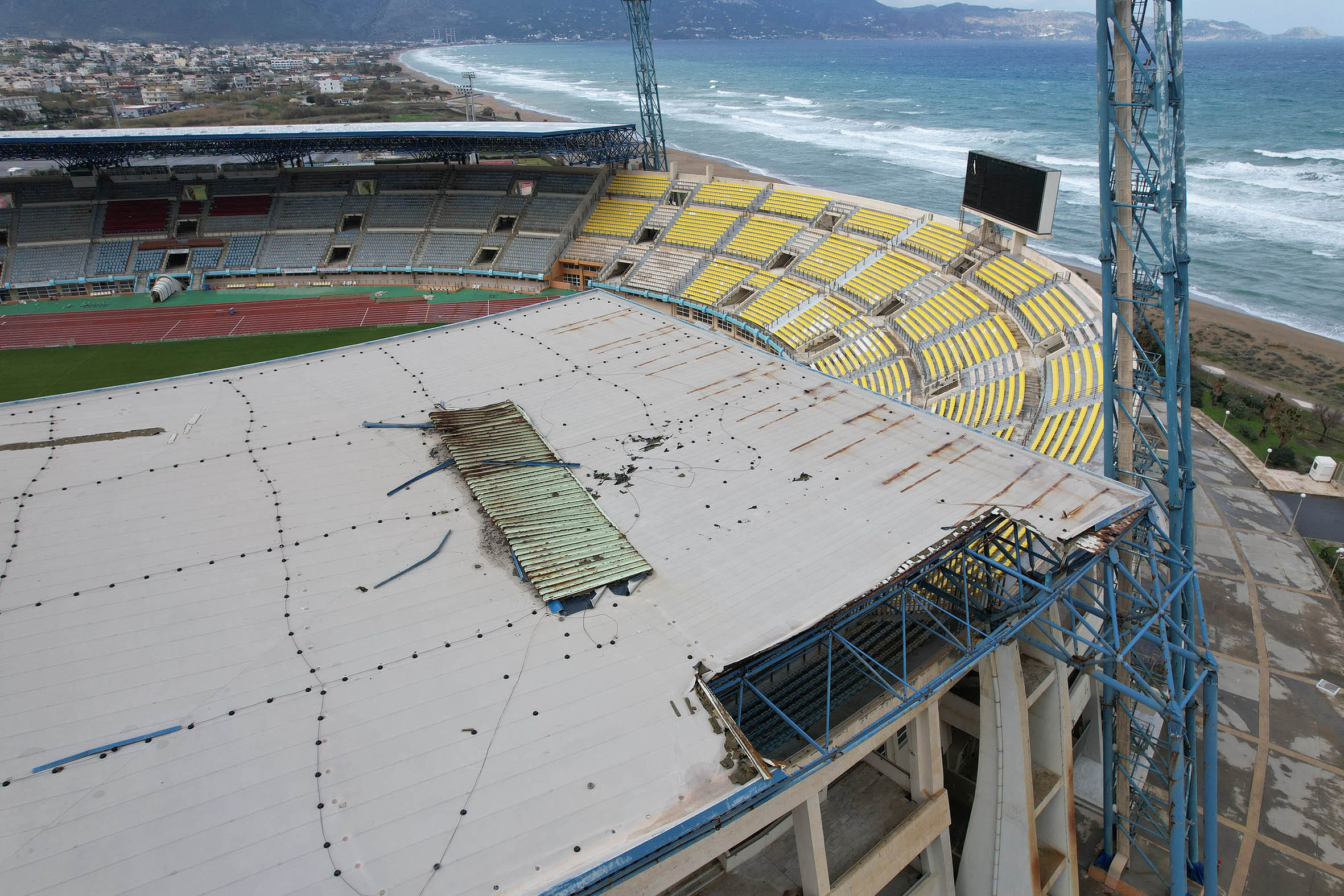 Σύμφωνα με την επίσημη ενημέρωση, την Παρασκευή 2 Φεβρουαρίου, εφόσον το επιτρέψουν οι καιρικές συνθήκες, θα ξεκινήσουν οι εργασίες απομάκρυνσης του τμήματος του στεγάστρου του Παγκρητίου Σταδίου που αποκολλήθηκε από τους θυελλώδεις ανέμους το βράδυ της Δευτέρας 29/1, καθώς και ο έλεγχος και οι όποιες εργασίες στερέωσης απαιτηθούν.